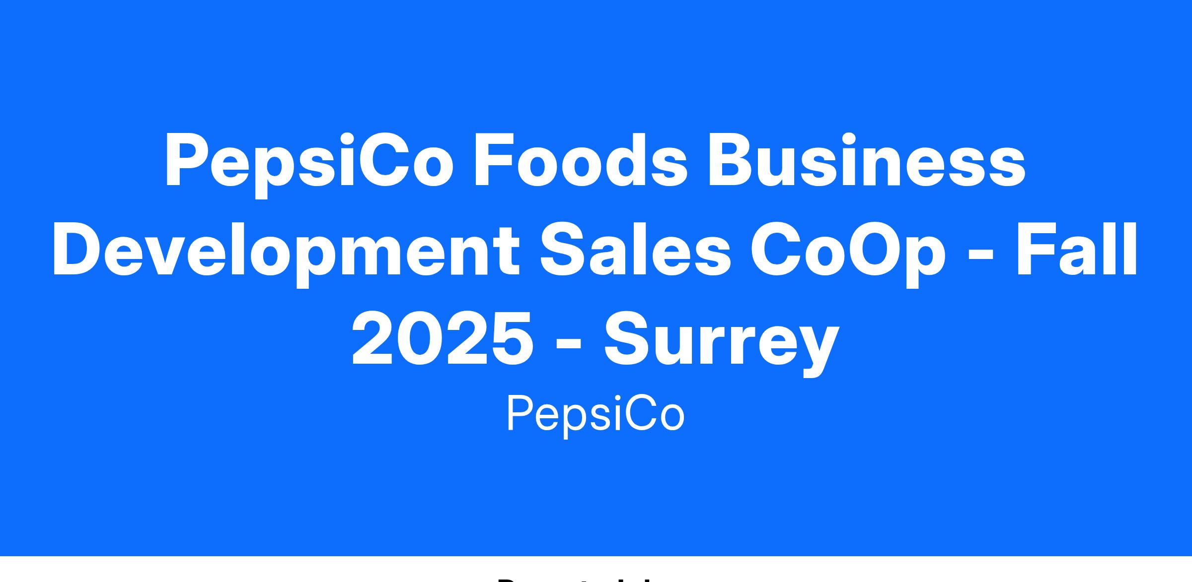 PepsiCo Foods Business Development Sales CoOp - Fall 2025 - Surrey
