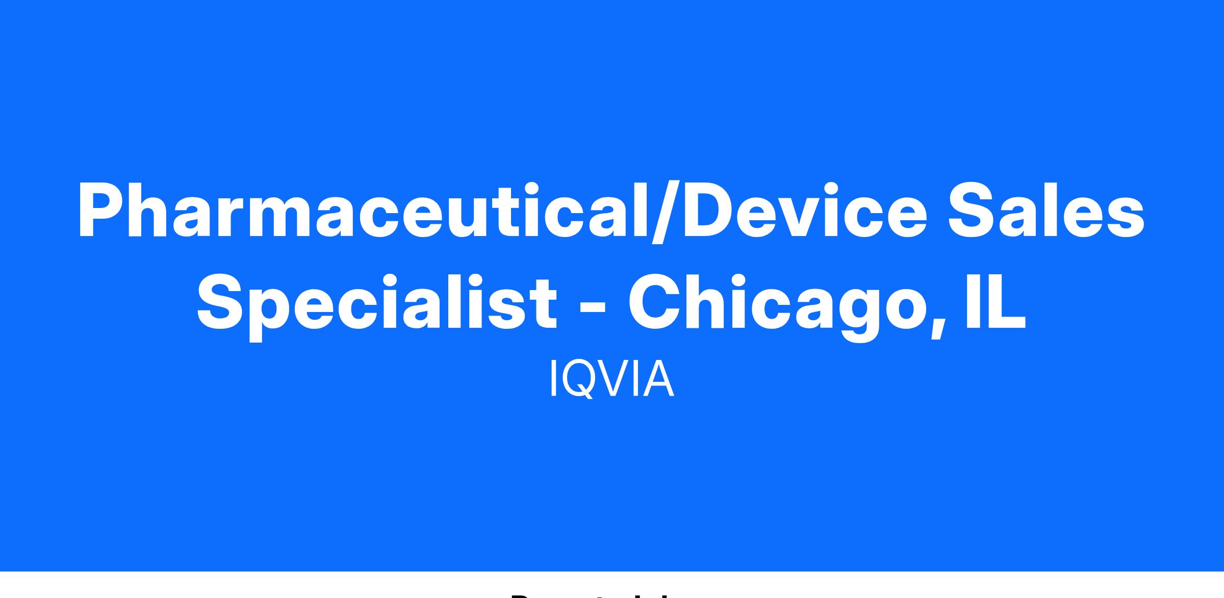 Pharmaceutical/Device Sales Specialist - Chicago, IL