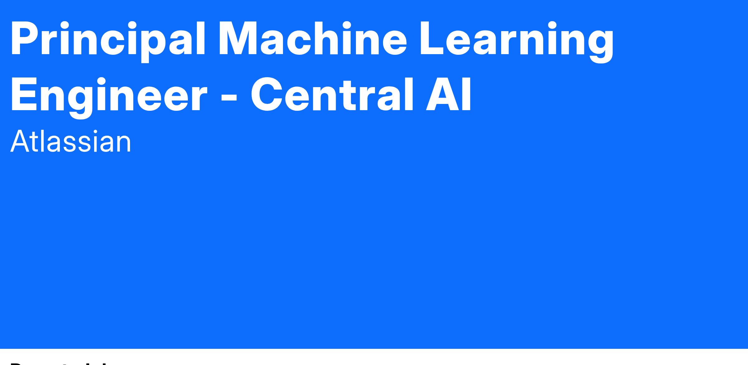 Atlassian is looking for a Principal Machine Learning Engineer to become a part of our Central AI organization. This team is responsible for creating Atlassian's leading AI products, essential infrastructures, data pipelines, frameworks, models, and other capabilities that accelerate AI feature development across the entire company.