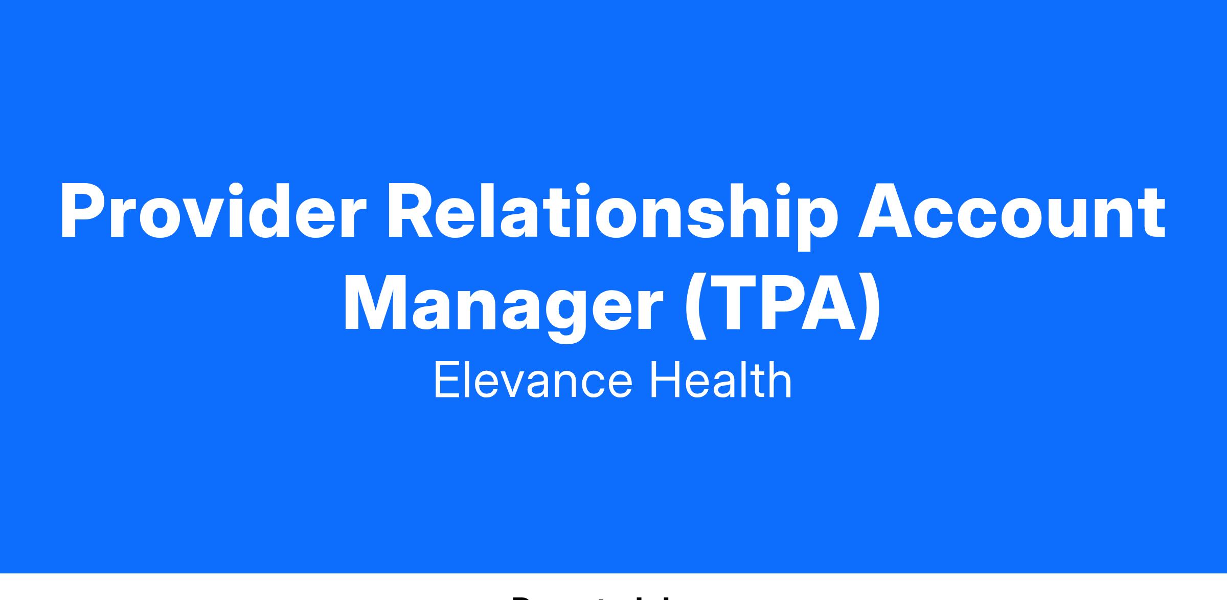 JR140167 Provider Relationship Account Manager (TPA)