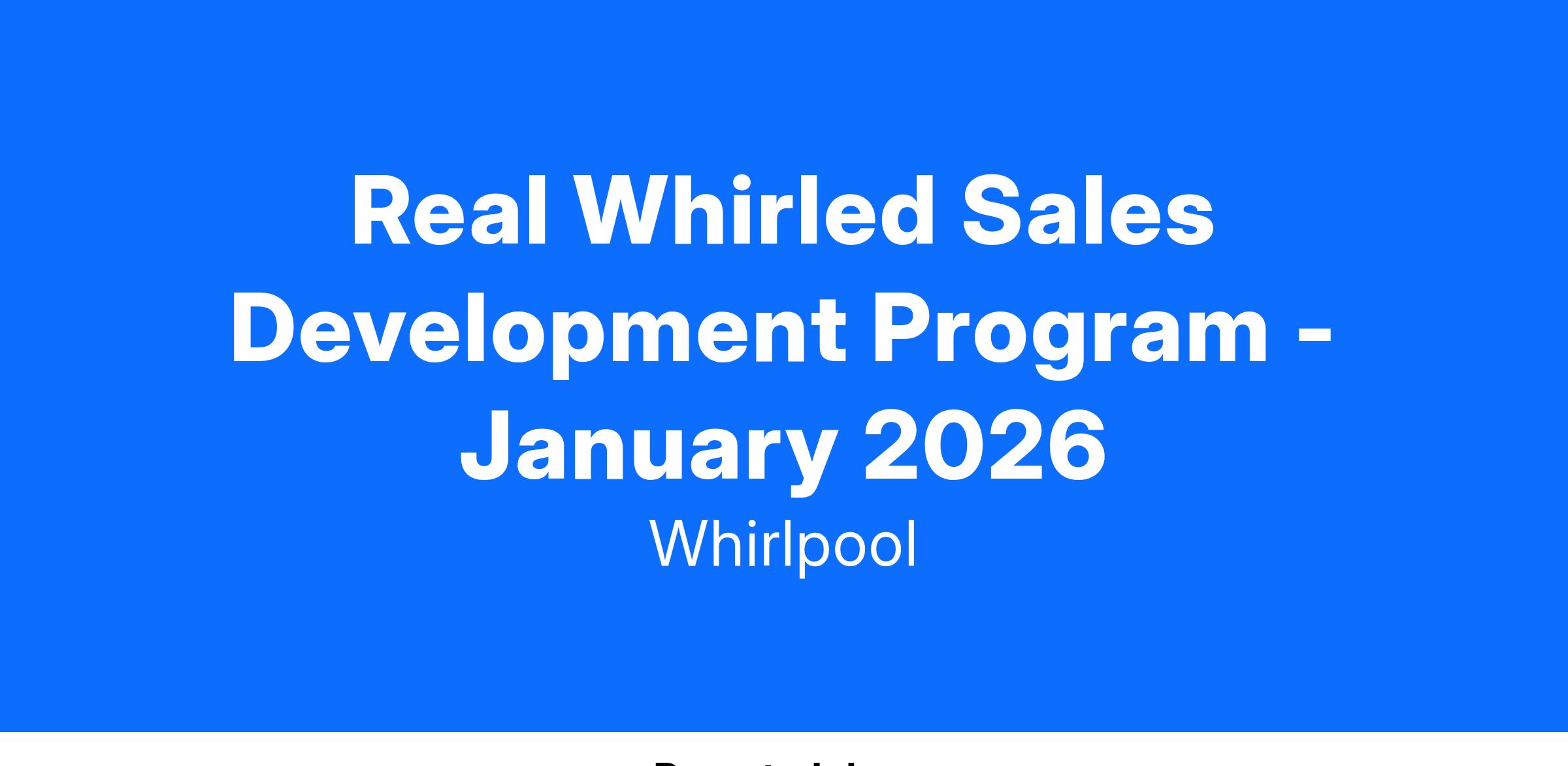 Fast track your career trajectory in the Real Whirled Sales Development Program by interacting in a variety of professional settings as you gain exposure to the Whirlpool business. Spend about two to three years gaining a strong foundation in our brands, sales strategy, merchandising approach and operations. Real Whirled Alumni advance into roles in field sales, channel sales, operations, sales enablement, direct to consumer sales, merchandising, brand and product marketing, and beyond!