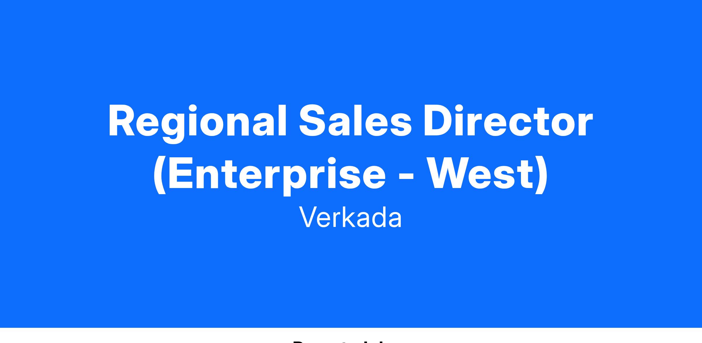 We are seeking an accomplished, driven Regional Sales Director (Enterprise - West) to lead a team focused on acquiring net-new business and expanding existing accounts within the Corporate market. This role is pivotal to driving growth in organizations with 2,000 to 20,000 employees, excluding the public sector. The Regional Sales Director will oversee the west region and collaborate with cross-functional teams to achieve ambitious revenue targets while playing an integral role in helping Verkada surpass our growth objectives.