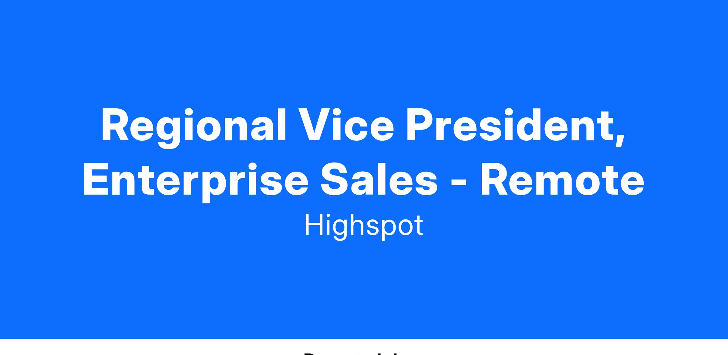 As a Regional Vice President, Sales, you will lead a team within our Enterprise segment to achieve ambitious revenue goals. In this pivotal leadership role, you will drive team performance and develop and execute strategic initiatives to expand our market presence. This is a unique opportunity to shape the future of our sales organization and play a key role in accelerating the company’s growth.