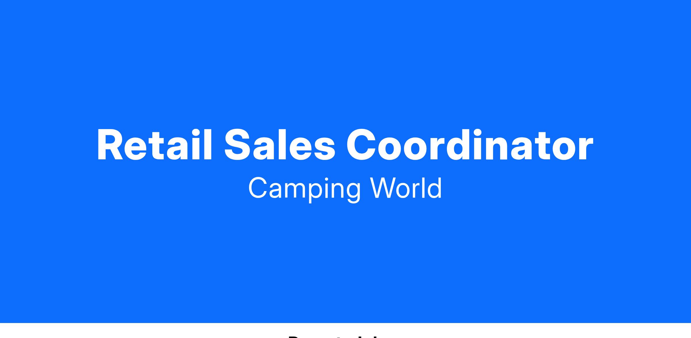 Camping World is seeking a Retail Sales Associate for our growing team. As a Retail Sales Associate you will be responsible for ensuring that every customer receives the best customer service.