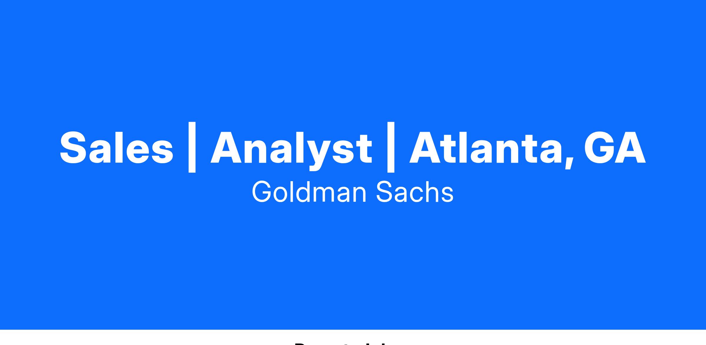 - Relay GS research and market views to Private Wealth Advisors