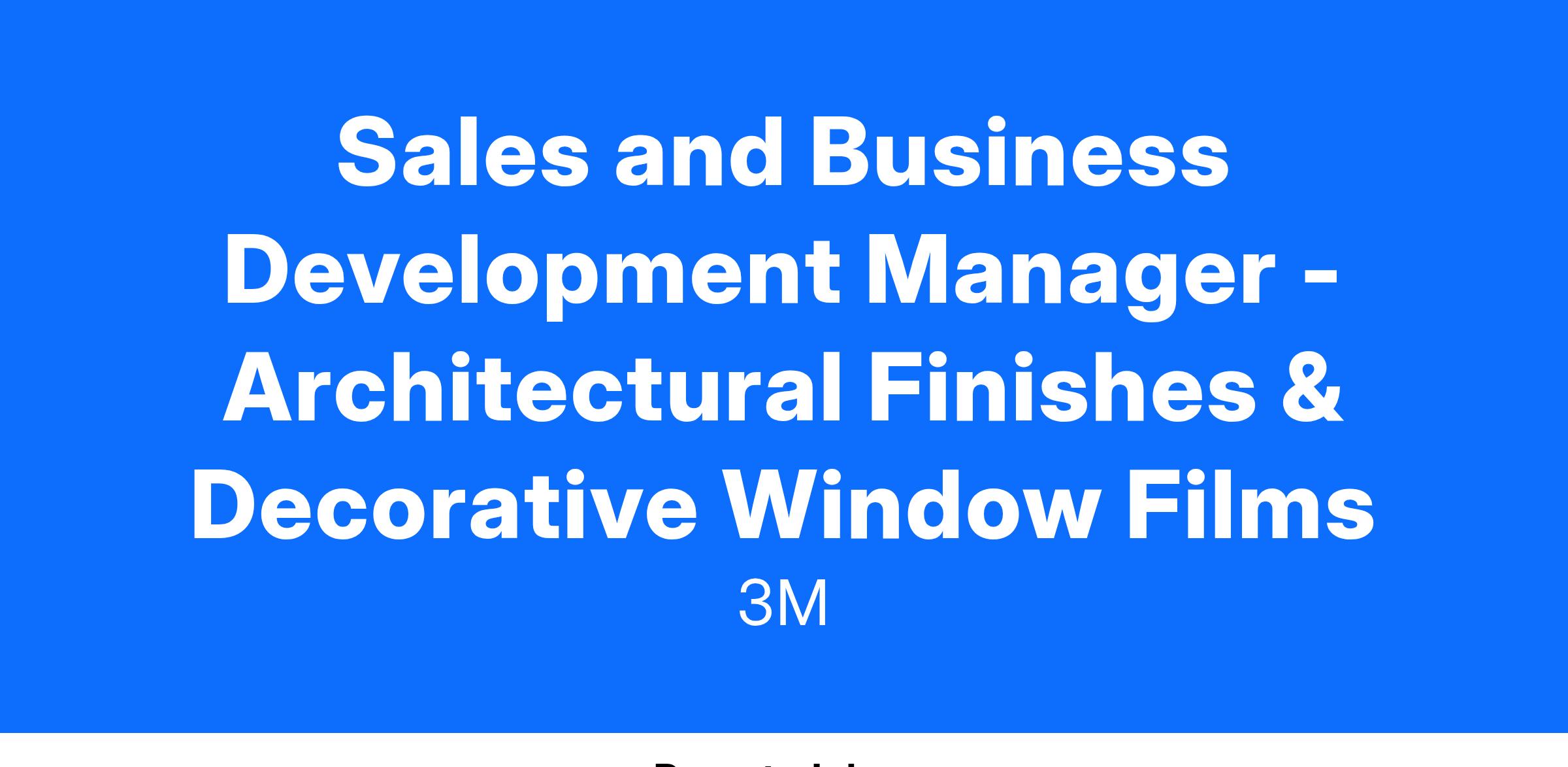 Sales and Business Development Manager – Architectural Finishes & Decorative Window Films