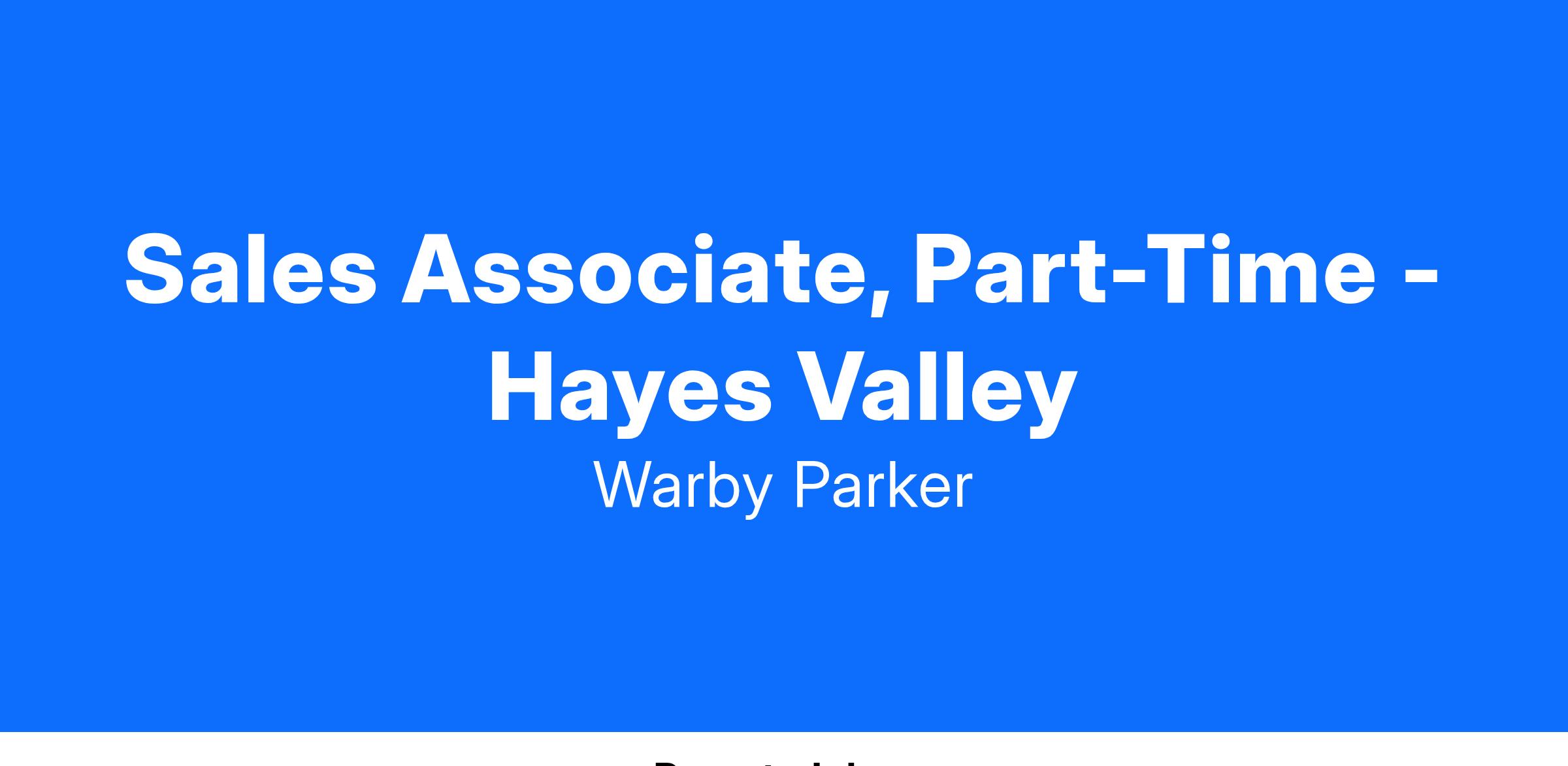Warby Parker is searching for a well-rounded Sales Advisor to help us deliver the best possible service to each and every one of our customers. (At other brands, you might see similar roles called Sales Associate.) In supporting our retail locations across the country (and Canada!), Advisors have a direct, immediate impact on the success of Warby Parker through customer interactions, process ideation and improvement, and various special projects. We've grown to who we are today thanks in no small part to them! In this role, you'll get to show folks firsthand what Warby Parker is all about while making glasses shopping a goosebump-inducing experience. Sound cool? Read on!