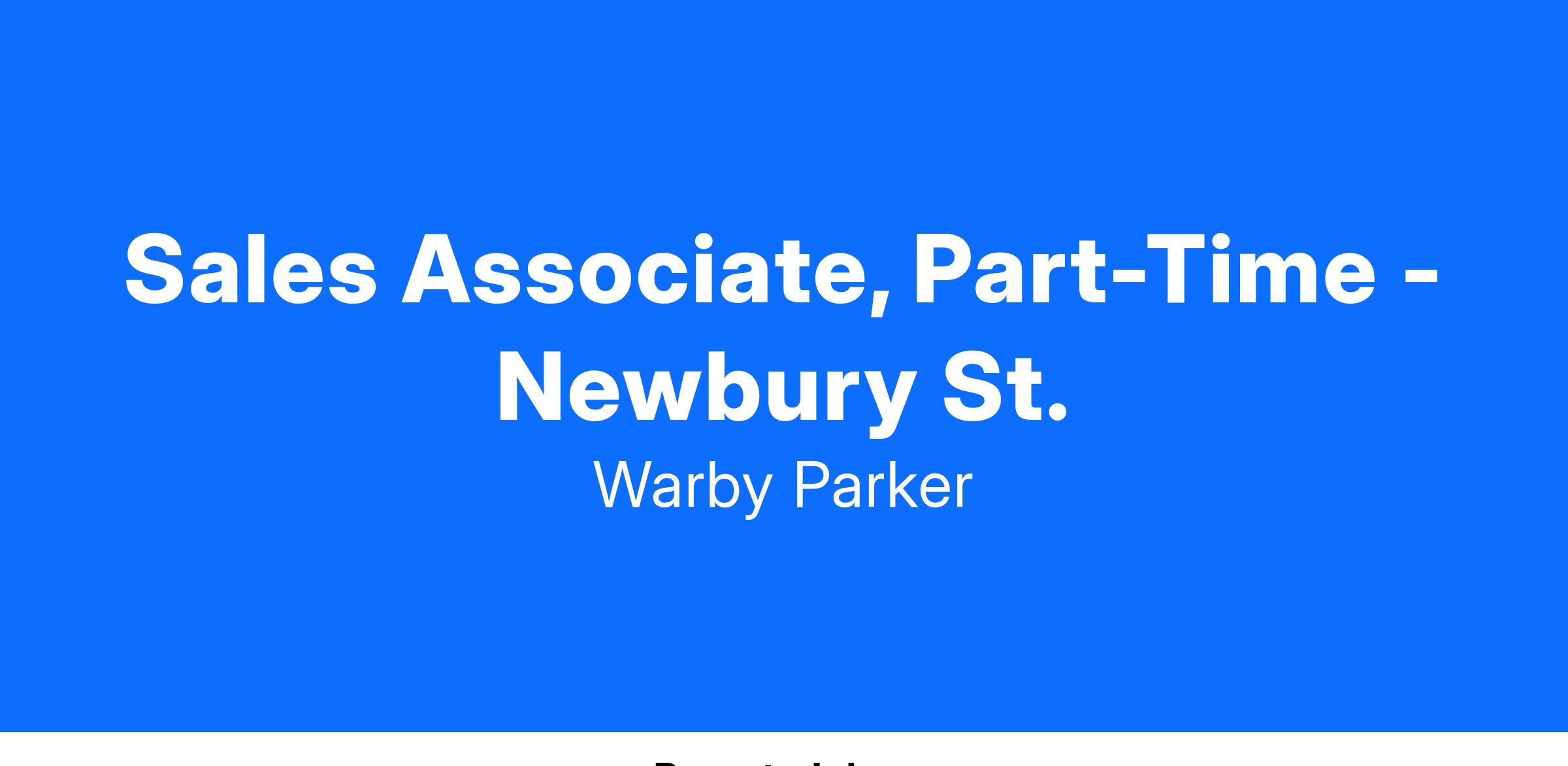 Warby Parker is searching for a well-rounded Sales Advisor to help us deliver the best possible service to each and every one of our customers. (At other brands, you might see similar roles called Sales Associate.) In supporting our retail locations across the country (and Canada!), Advisors have a direct, immediate impact on the success of Warby Parker through customer interactions, process ideation and improvement, and various special projects. We've grown to who we are today thanks in no small part to them! In this role, you'll get to show folks firsthand what Warby Parker is all about while making glasses shopping a goosebump-inducing experience. Sound cool? Read on!
