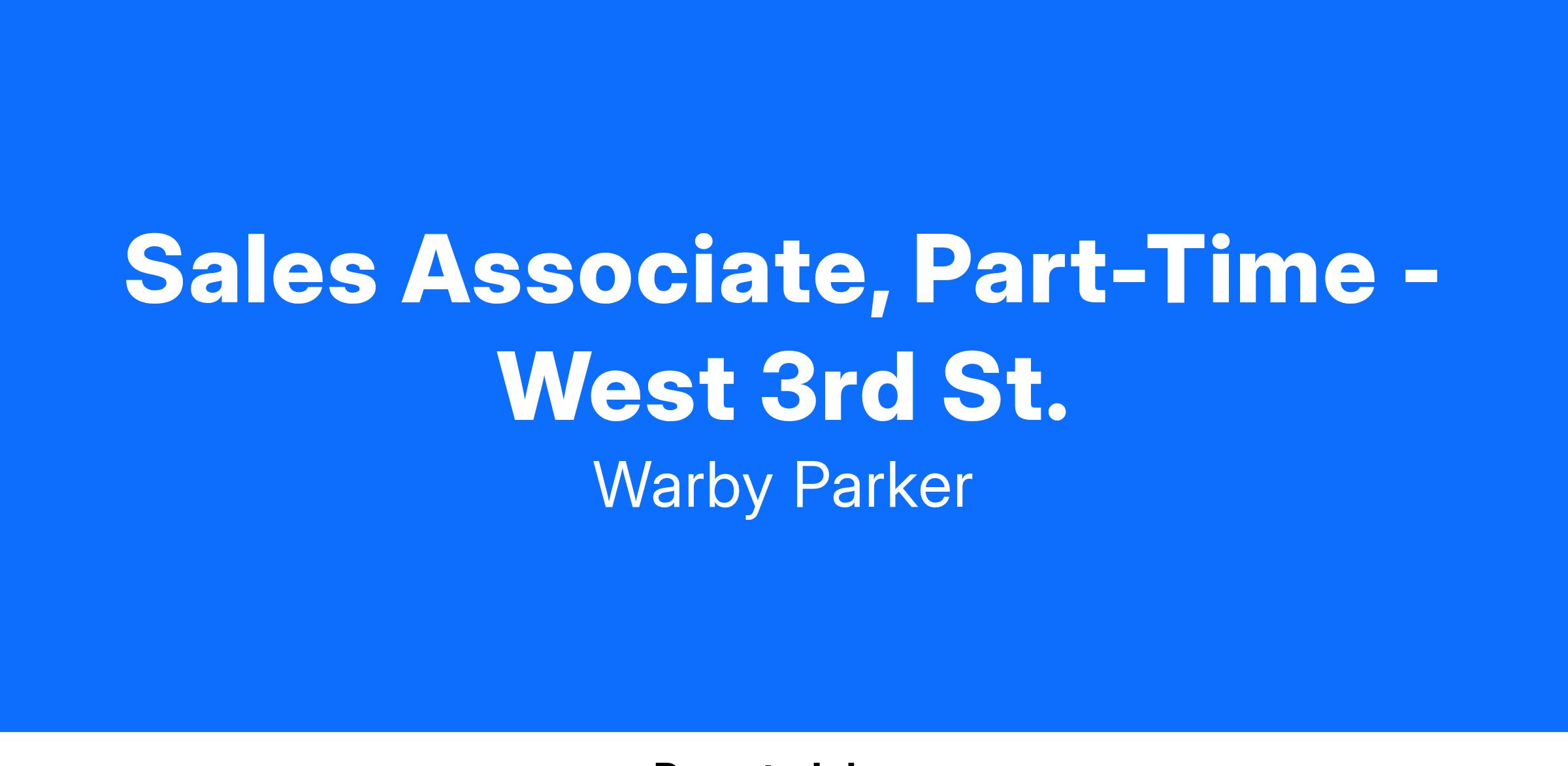 Warby Parker is searching for a well-rounded Sales Advisor to help us deliver the best possible service to each and every one of our customers. (At other brands, you might see similar roles called Sales Associate.) In supporting our retail locations across the country (and Canada!), Advisors have a direct, immediate impact on the success of Warby Parker through customer interactions, process ideation and improvement, and various special projects. We've grown to who we are today thanks in no small part to them! In this role, you'll get to show folks firsthand what Warby Parker is all about while making glasses shopping a goosebump-inducing experience. Sound cool? Read on!