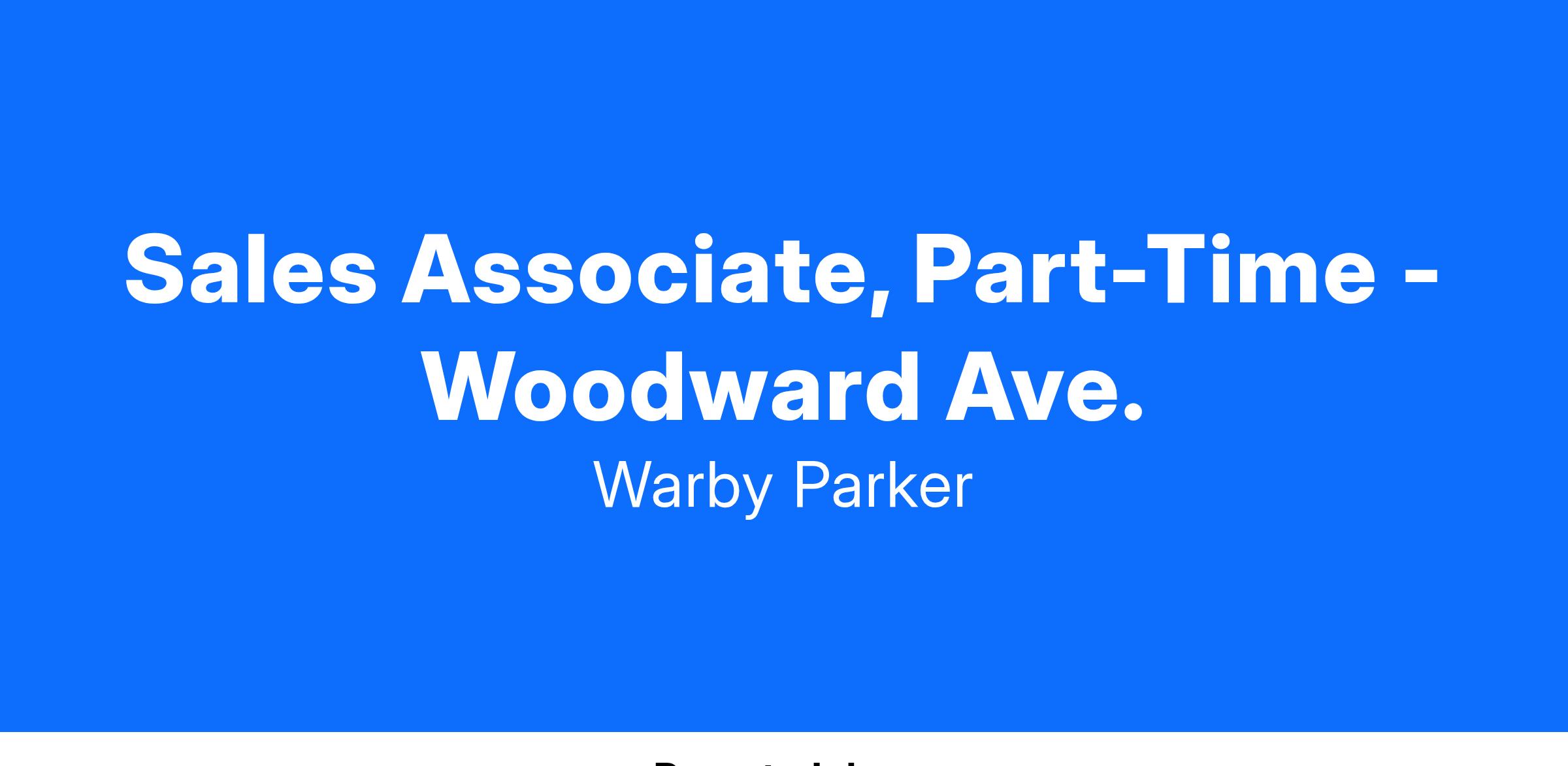 Warby Parker is searching for a well-rounded Sales Advisor to help us deliver the best possible service to each and every one of our customers. (At other brands, you might see similar roles called Sales Associate.) In supporting our retail locations across the country (and Canada!), Advisors have a direct, immediate impact on the success of Warby Parker through customer interactions, process ideation and improvement, and various special projects. We've grown to who we are today thanks in no small part to them! In this role, you'll get to show folks firsthand what Warby Parker is all about while making glasses shopping a goosebump-inducing experience. Sound cool? Read on!