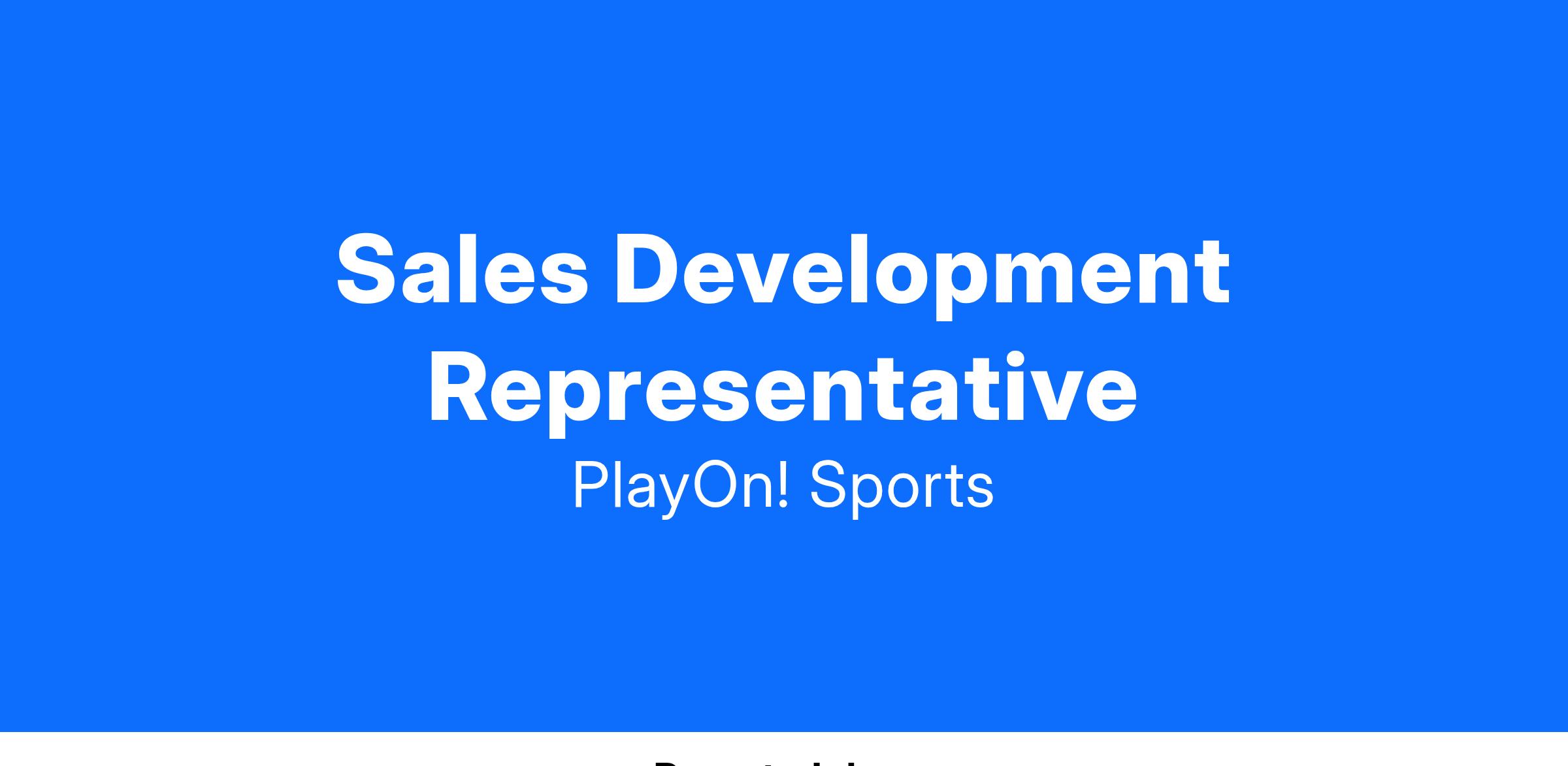 PlayOn is looking for a Sales Development Representatives to join our rapidly growing sales team. This position will focus on facilitating initial conversations and developing team wide best practices. You will be an integral member for our Sales organization! In this role, you’ll be responsible for creating excitement about PlayOn. You’ll get to work alongside an extremely passionate and supportive team, but most importantly you’ll jumpstart your career in an exciting field. If you’re interested in venturing outside the norm and are ready to join a rapidly growing company with a proven business model, we’d love to learn more about you.