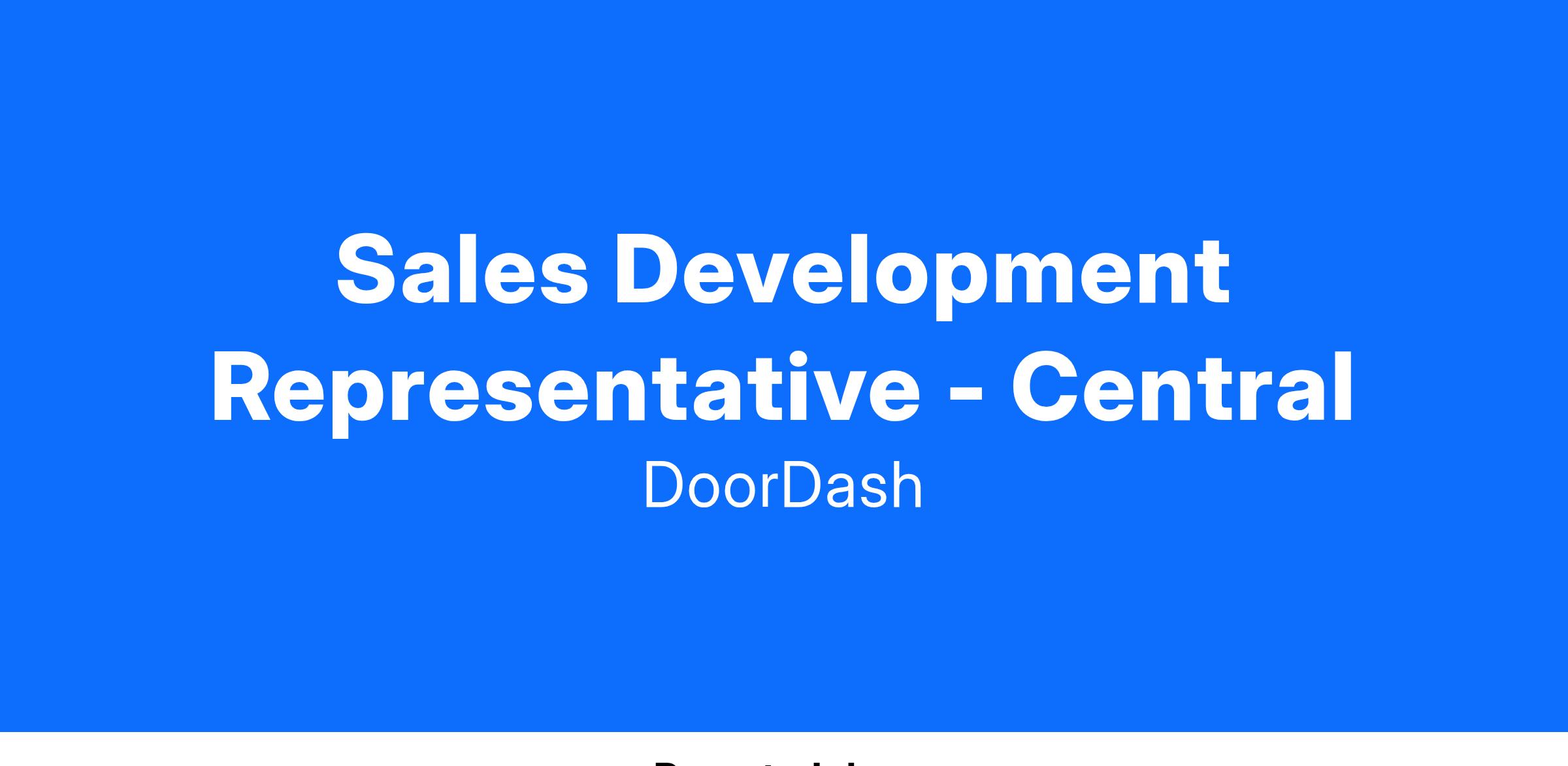 We're looking for a Sales Development Representative to join our Outside Sales team to bring the best local and regional merchants on to DoorDash's platform! As a Sales Development Representative, you'll join a team of experienced operators who have excelled in the art of booking qualified meetings. As part of the team you'll support a region and all the opportunities within it! The team is laying the foundation for what will eventually be the single biggest competitive advantage for DoorDash — industry-leading partnership terms with the best merchants.