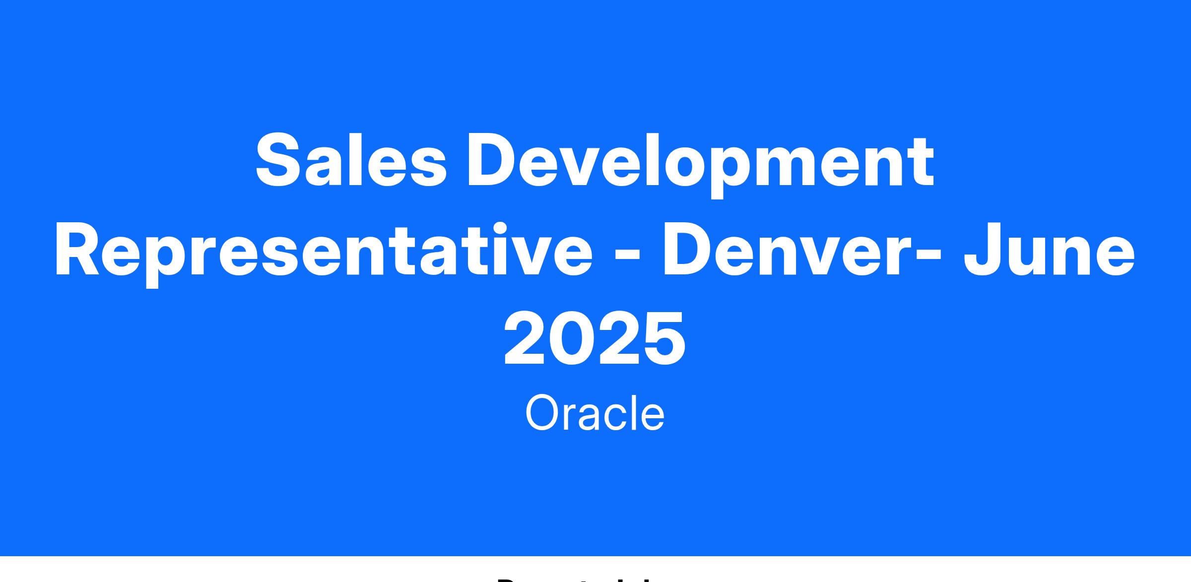 A challenging, exciting role that will test your sales skills, tenacity and prospecting skills, critical thinking capabilities, ability to remain focused, and follow-through. You will be provided the tools, training, coaching, and people resources to help you be successful. Upon territory assignment, you will qualify and promote leads for new prospects and/or existing customers to the Oracle sales team with defined next steps. The Sales Development Role is a sales role that is generally eligible for incentive compensation contingent upon achieving specified objectives.