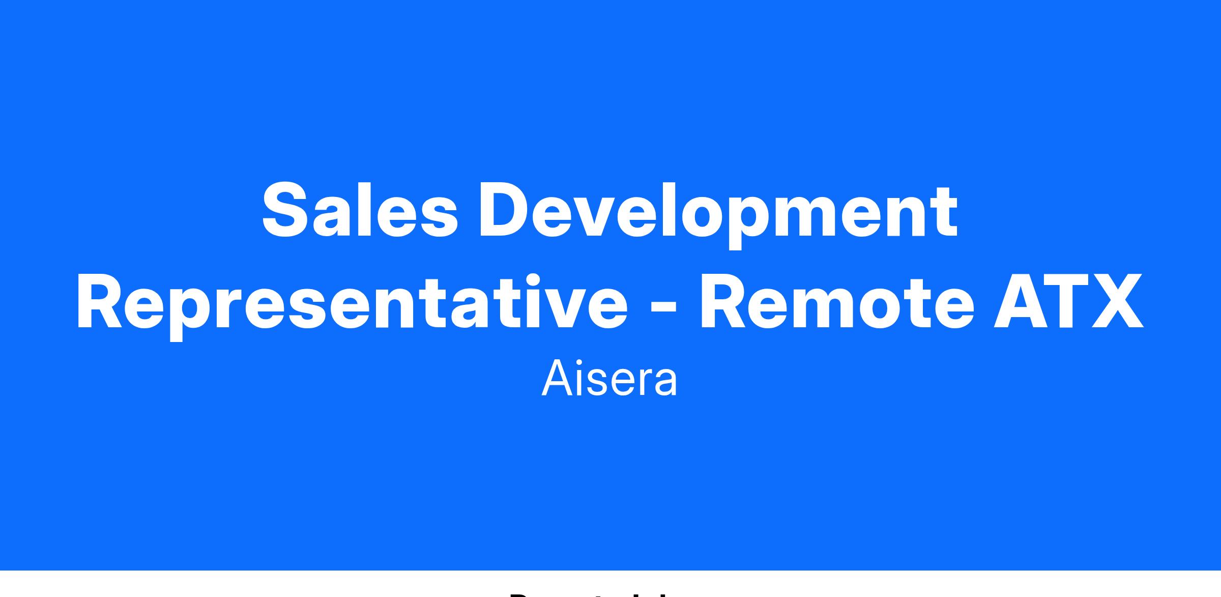 At Aisera, an SDR will work closely with prospect companies, helping them understand the value of our solution. You’ll have success in this role by understanding the customer’s definition of business value and challenging them to think about new ways to differentiate and transform their business. In short: you’ll inspire some of the world’s most iconic brands to better engage with their employees and customers.