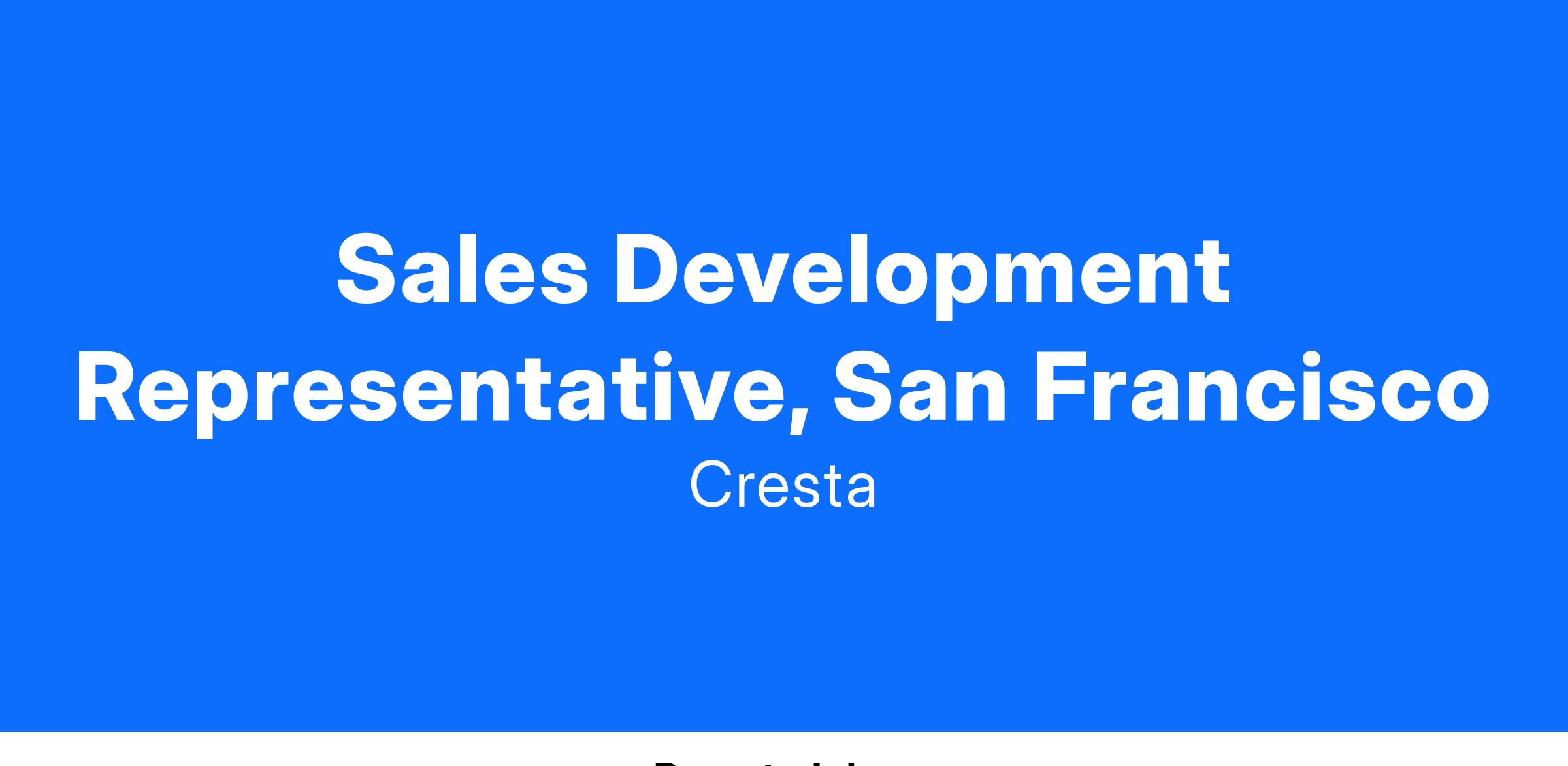 As a Sales Development Representative (SDR), you will be responsible for building pipeline through outbound prospecting and inbound qualification. You will help generate qualified leads that result in new business, supporting our scaling efforts and contributing to the success of our team. We are looking for driven professionals with sound business acumen, strong technical aptitude and natural sales instincts to join our fast growing sales organization.
