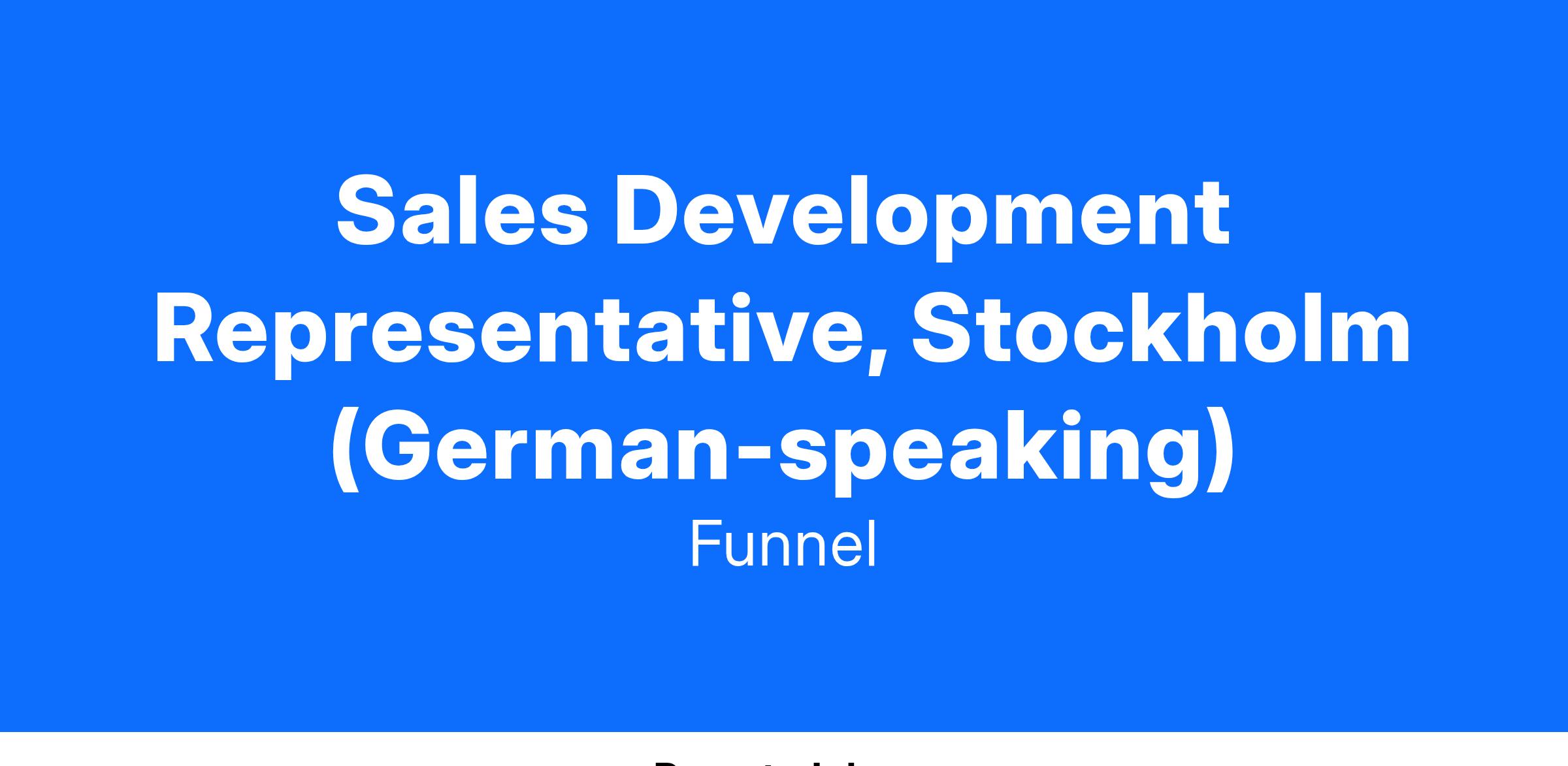 The SDR team is a close-knit team that strives for collaboration and has a strong feedback culture; we want to win as a team. Your manager is located in Stockholm, Sweden.