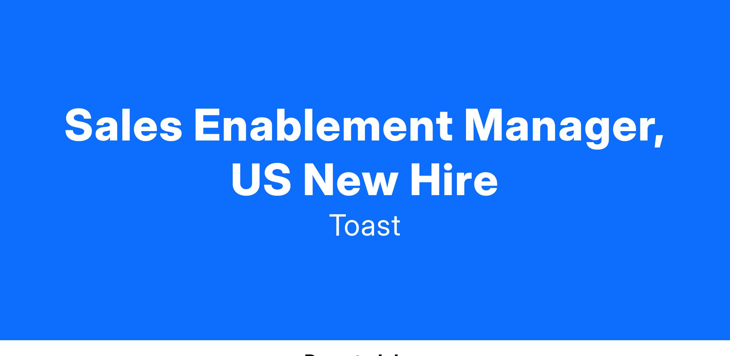 Toast is driven by building a platform that helps businesses adapt, take control, and get back to what they do best: building the businesses they love. As the Sales Enablement Manager, you’ll work closely with our SMB sales team, SMB sales leaders, and cross functional partners. Working in lockstep with Enablement peers & Sales Leaders, in this role you will be the team’s dedicated enablement resource for ongoing training and program management.