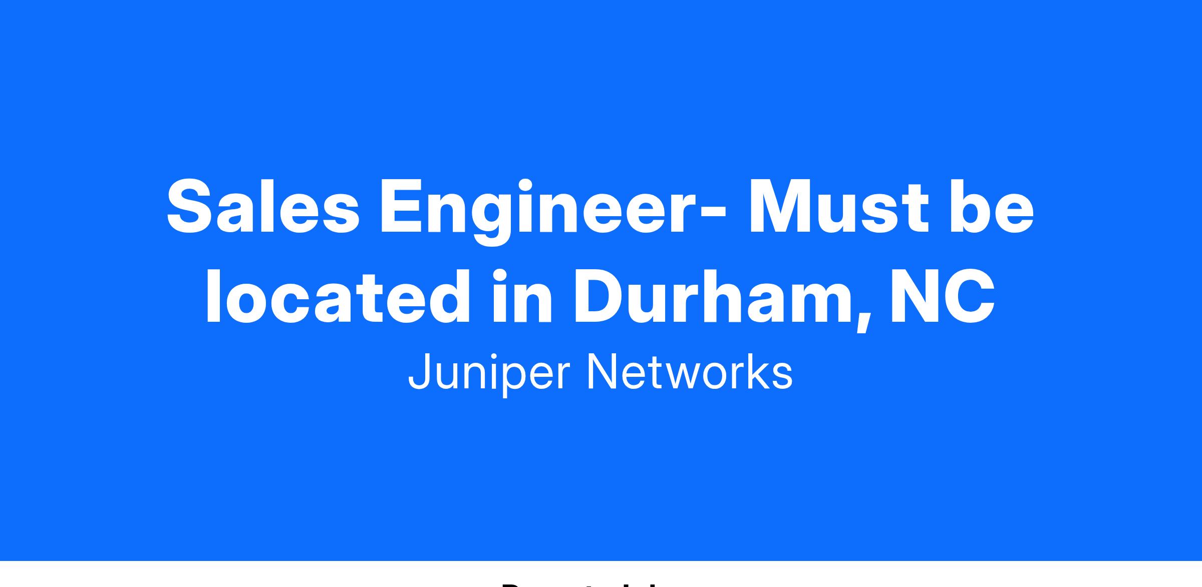 A Sales Engineer (SE) is an outstanding individual who combines communications skills to build strong professional relationships with technical skills to develop compelling network solutions that accomplish our customers’ business imperatives. The Commercial SE partners with Account Managers to drive revenue growth for Juniper by delivering business success to our customers and partners.