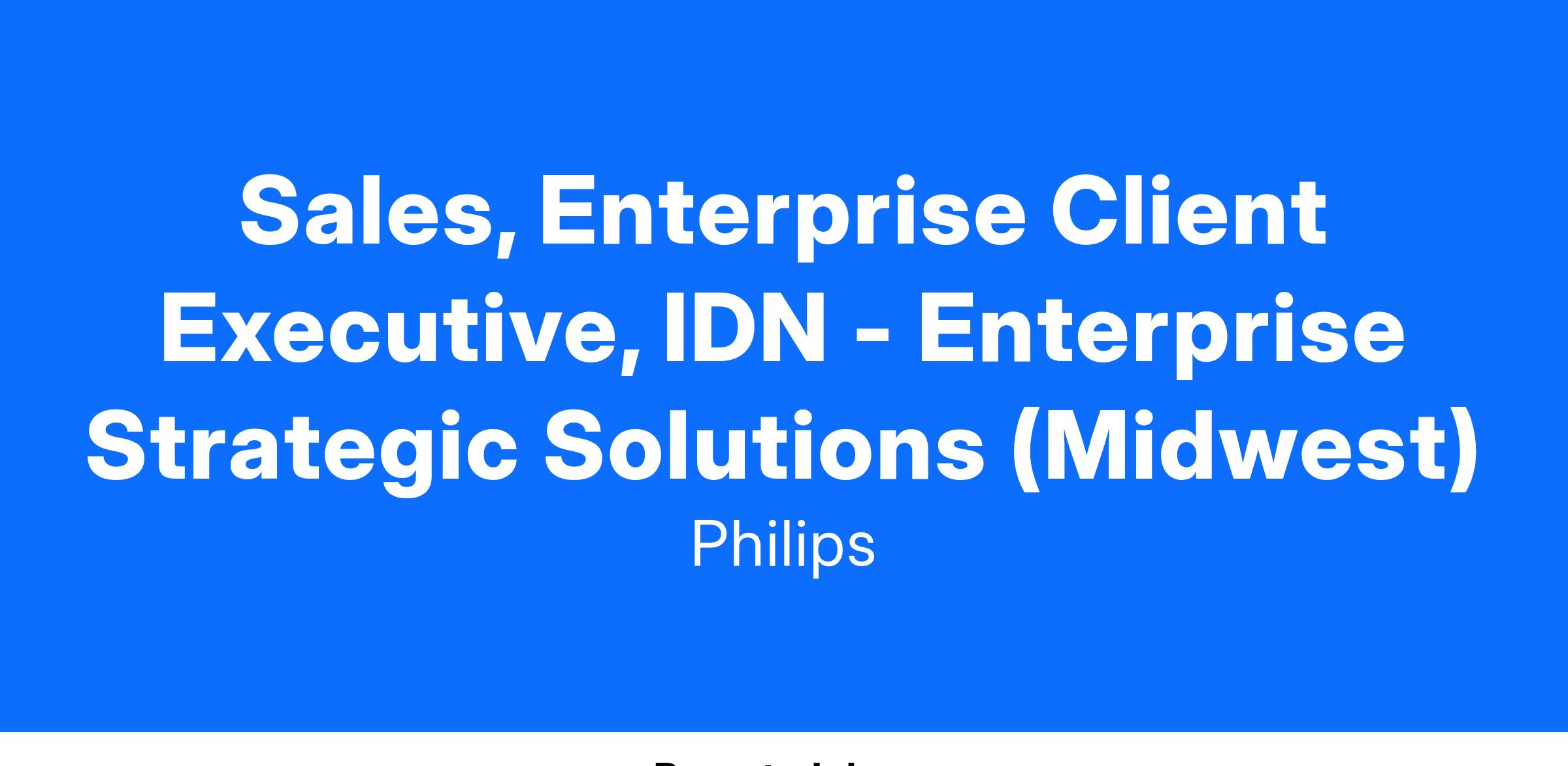 As the Enterprise Client Executive for National Accounts you will be challenged to manage contracts and relationships with select IDN's for all of Philips Healthcare Products.