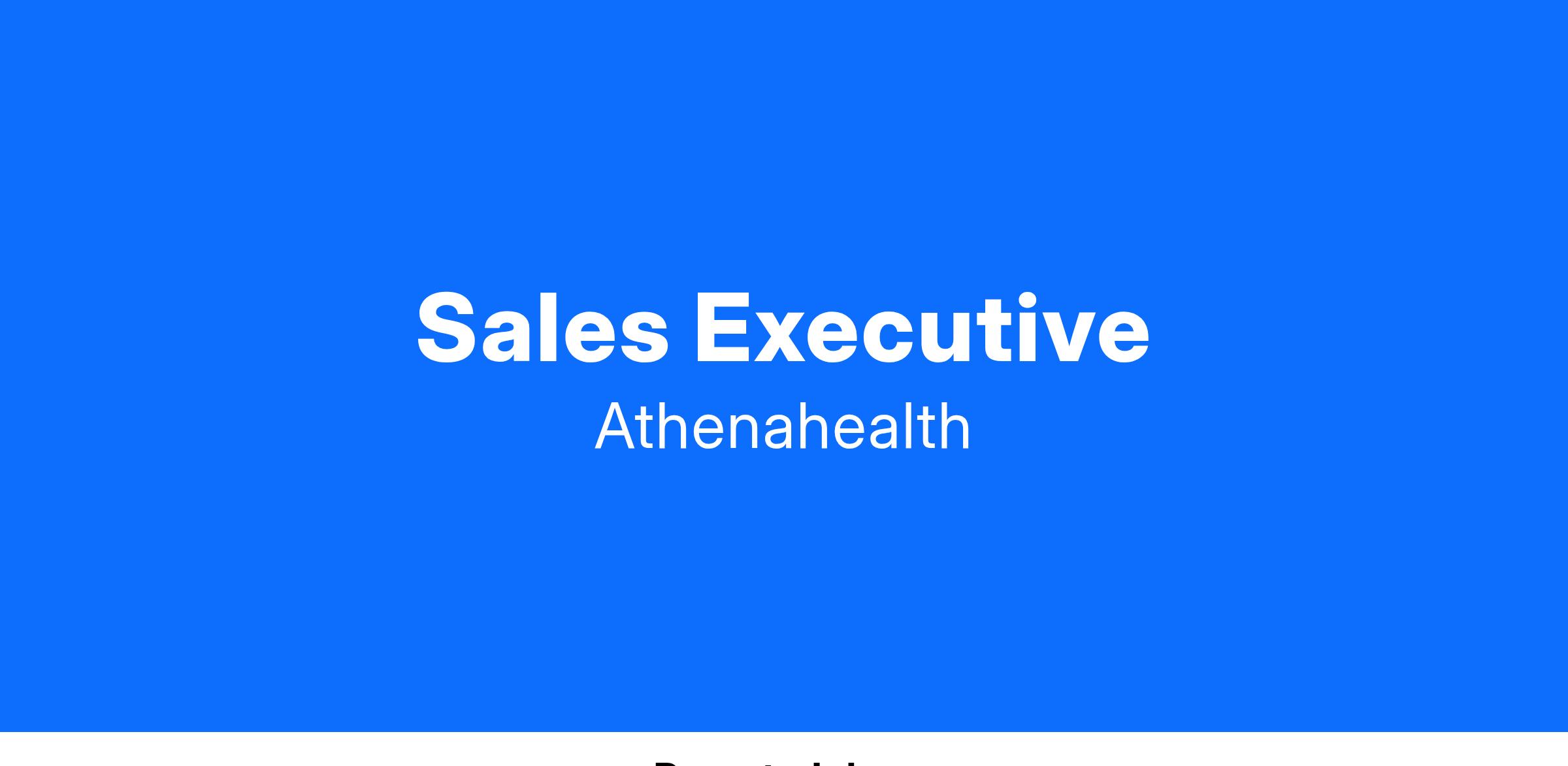 We are looking for a Sales Executive to join our Small Medical Practice team within our Sales division. Your job will be to sell athena’s core healthcare technology solutions into independent medical practices with between 1 and 5 providers. But enough about us, let’s talk about you.