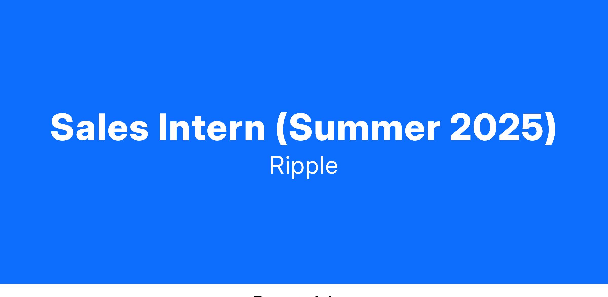 We’re looking for a FinTech oriented intern to join our Sales team this summer. The Sales intern will support the Ripple Payments and Ripple Custody Sales teams to build a robust pool of potential customers this summer. They will be responsible for developing strategy, sourcing and securing strategic relationships with crypto friendly payment companies, FinTech, banks to deliver Ripple’s vision, launch new products/verticals and drive network outcome.