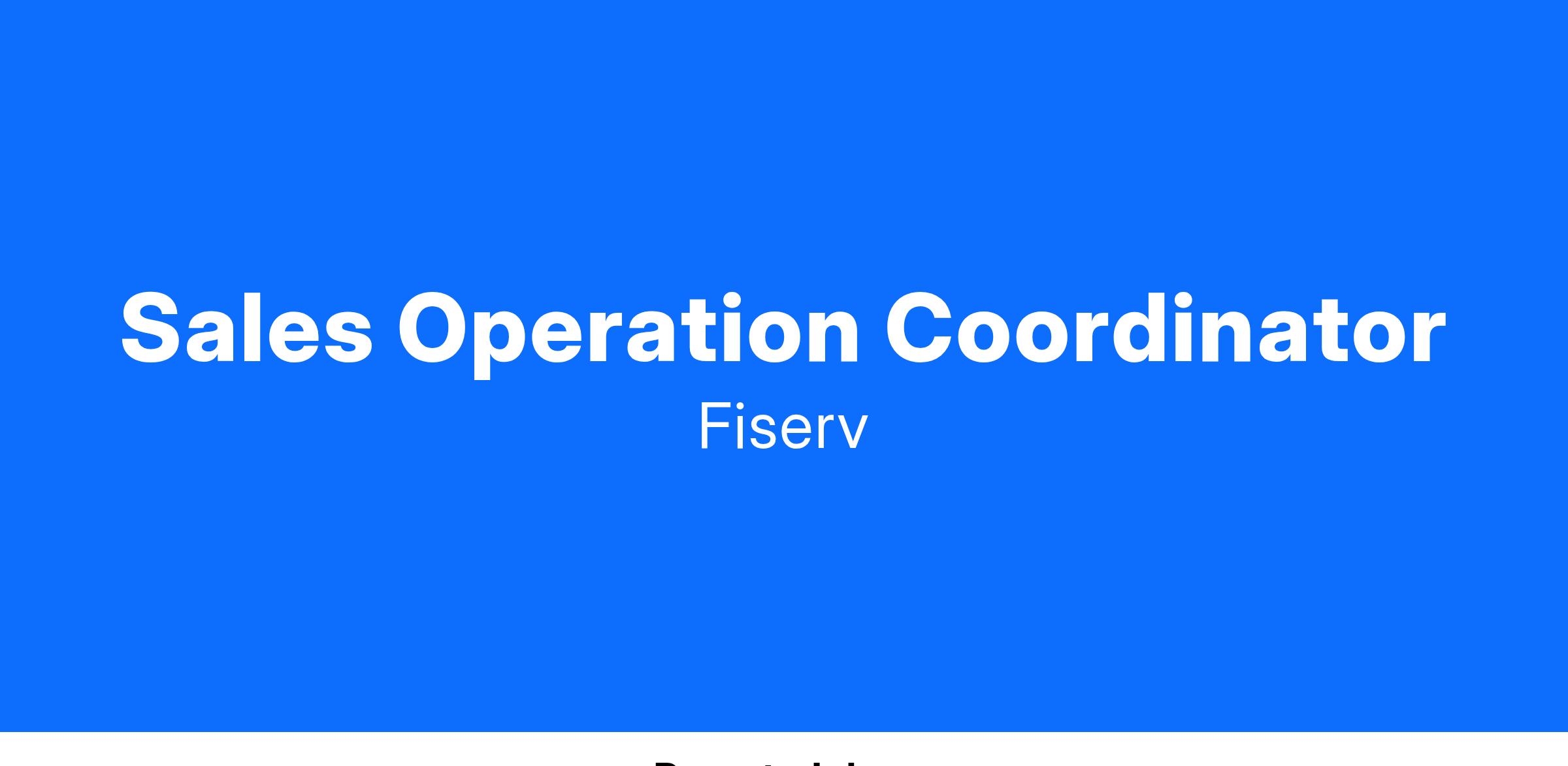 Sales Operation CoordinatorWhat does a successful Sales Operations Coordinator do at Fiserv?