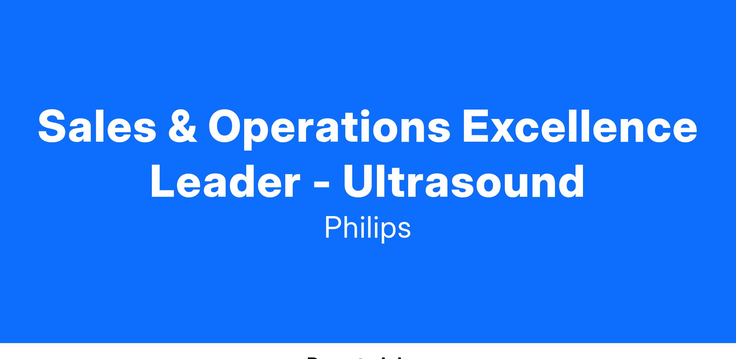 Sales & Operations Excellence Leader - Ultrasound will lead the improvement and execution of the S&OE process for a dedicated business unit in North America.