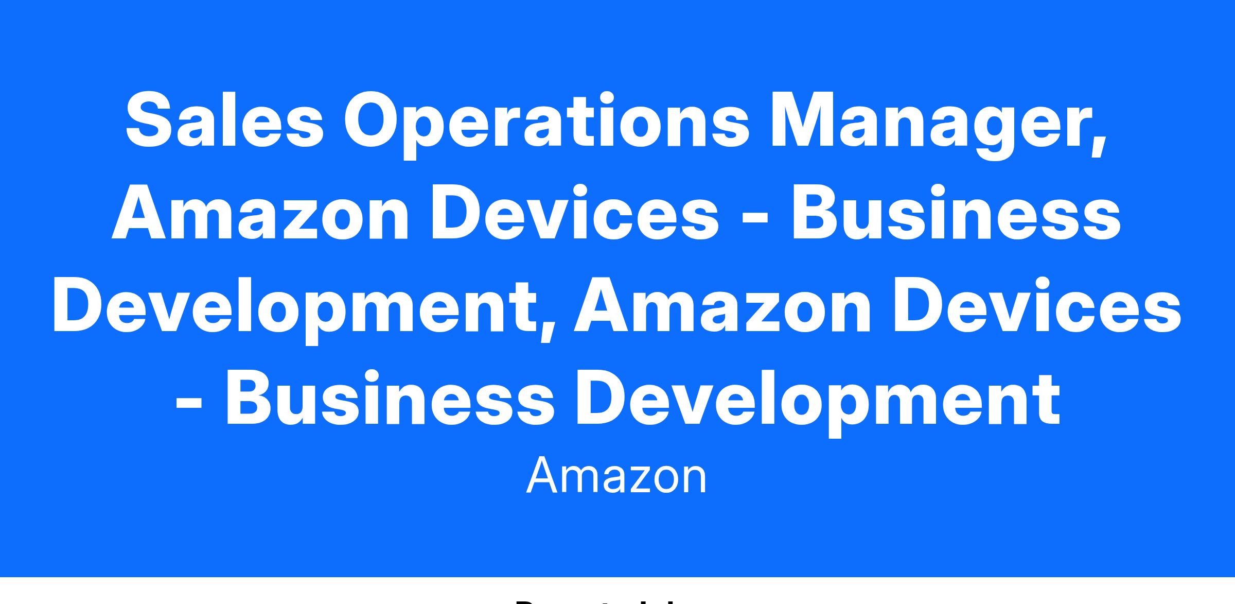 The Amazon Devices Business Development organization is looking for a results-oriented, data-driven Sales Operations Manager to support operational excellence across our Tech Licensing Business Development (TLBD) team.