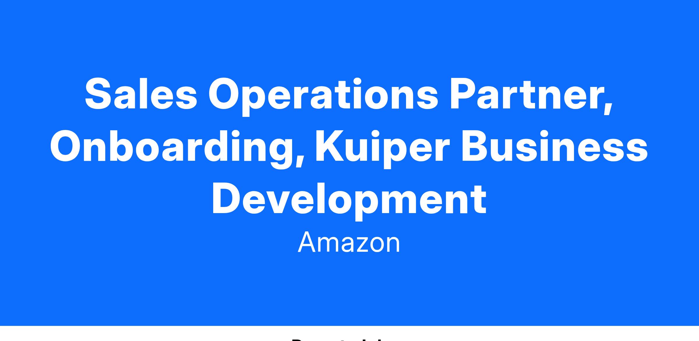 The Sales Operations, Onboarding and Order Management leader is a key part of the Commercial Revenue Operations of Kuiper. They will build and run processes to ensure a smooth, efficient, and compliant transition of new and renewed B2B clients from contract signing to recording. The role serves as a bridge between sales, sales operations, deal desk, legal, Field Operations, Customer Success, and Service Delivery teams, ensuring all contractual obligations are documented and executed. The successful candidate will have experience leading complex strategic initiatives across global programs with cross-functional stakeholders.