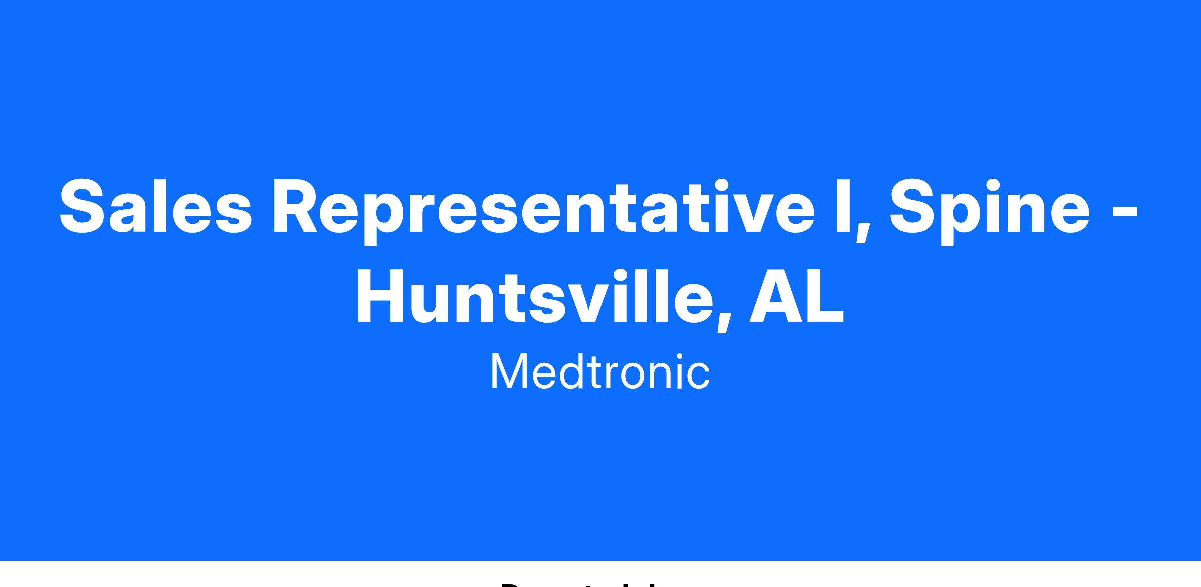 At Medtronic, the Sales Representative I, Spine is responsible for soliciting orders, selling Medtronic Spinal products assigned and representing the company in accordance with its policies and in the area assigned; for maintaining an awareness of local competitive conditions. This position will work in tandem with Spine Sales Representatives II and will have territory coverage responsibility and limited sales responsibility. Allocation guideline for core responsibilities include: Inventory Management, Case Coverage, and Selling (outside the operating room).