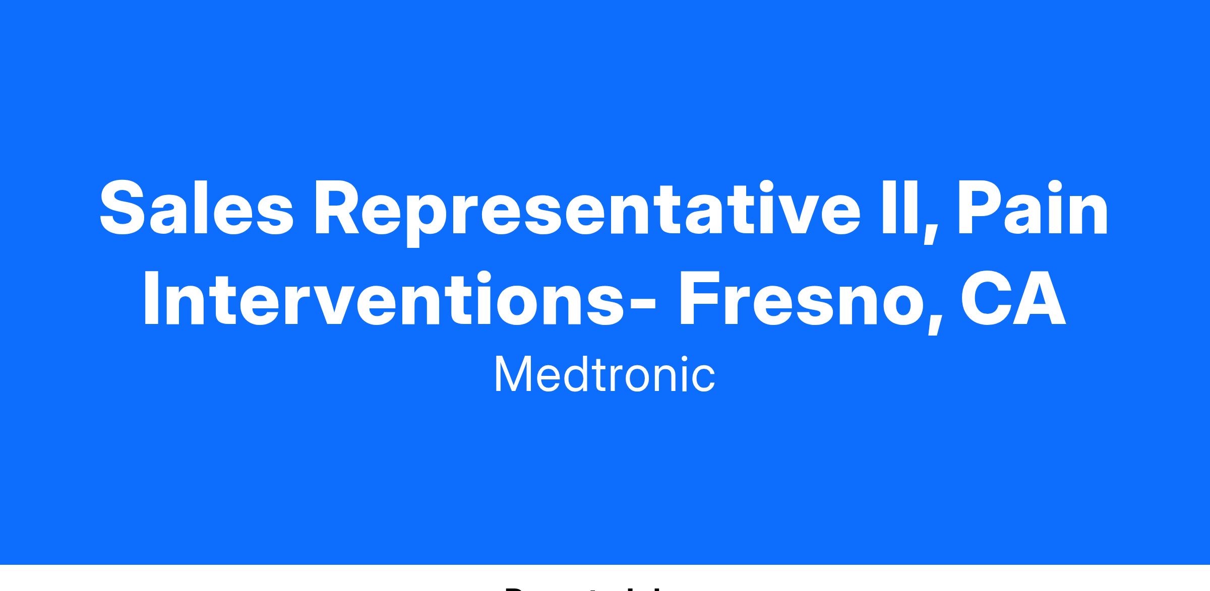 At Medtronic, the Sales Representative II, Pain Interventions is a Senior level role that is considered a clinical and technical expert on our Pain and Interventional Therapies. This role will manage territory base business and growth by initiating, supporting and developing strategic implanting centers and assisting in developing key referral networks. In certain geographies, will be the account/implanter relationship contact for assigned territory’s customer needs including account level reimbursement responsibility. This includes coordination of all support activities and development of sales partnerships with distribution alliances. This role reports directly to a District Sales Manager, partners with other Sales Representative peers as well as with a Clinical Specialist team.