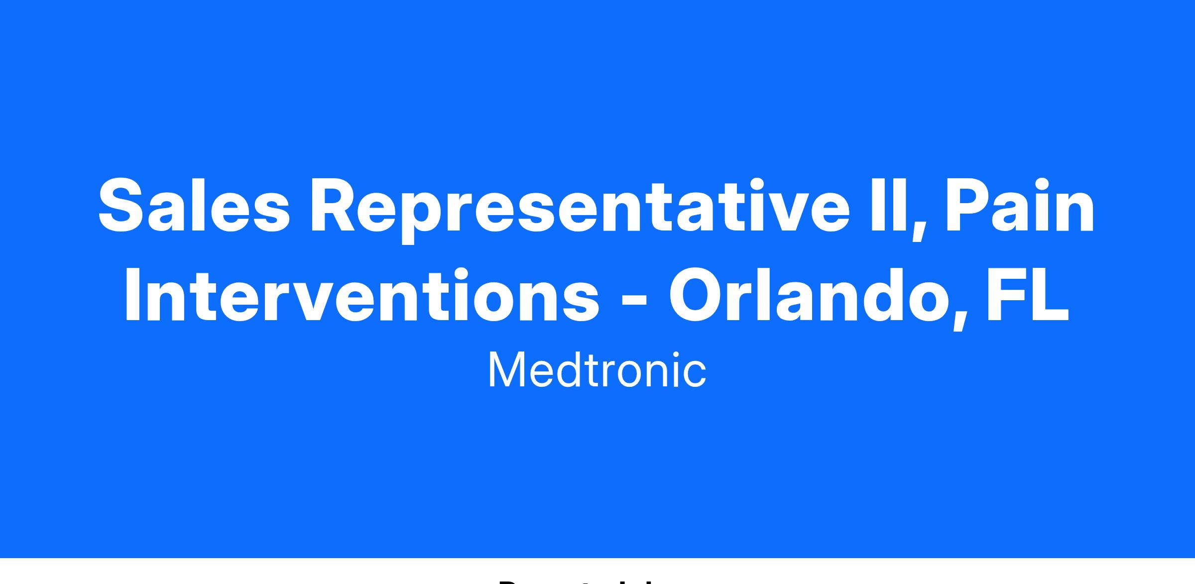 At Medtronic, the Sales Representative II, Pain Interventions is a Senior level role that is considered a clinical and technical expert on our Pain and Interventional Therapies. This role will manage territory base business and growth by initiating, supporting and developing strategic implanting centers and assisting in developing key referral networks. In certain geographies, will be the account/implanter relationship contact for assigned territory’s customer needs including account level reimbursement responsibility. This includes coordination of all support activities and development of sales partnerships with distribution alliances. This role reports directly to a District Sales Manager, partners with other Sales Representative peers as well as with a Clinical Specialist team.