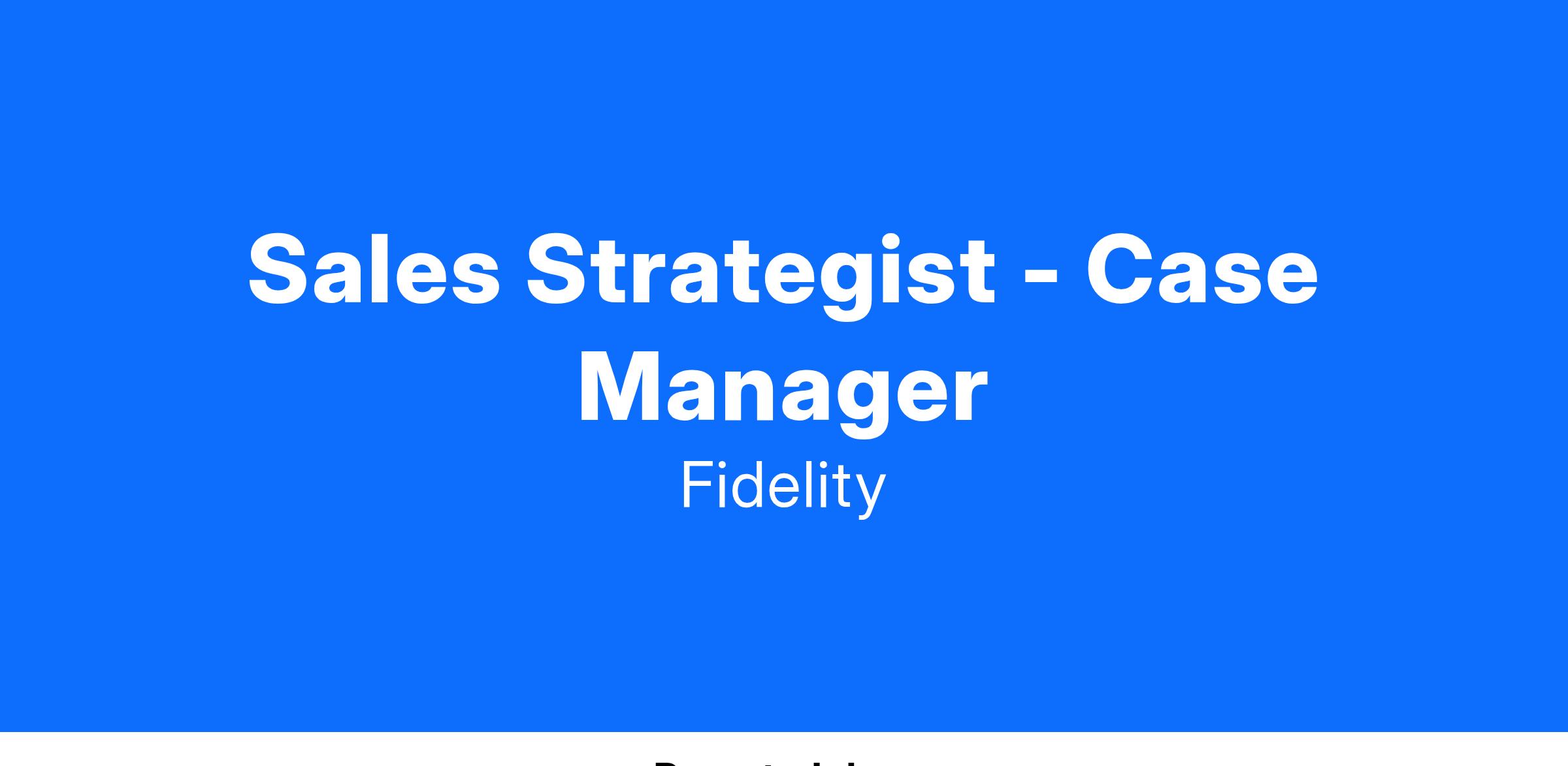 As a Sales Strategist, Case Manager your primary responsibility will be supporting Fidelity 401k and multi-product solution sales. You will work closely with your Workplace Investing Retirement Director and Regional Account Executive sales partners to support your team with both their ongoing advisor relationships and the sales process. Your purpose is to ensure the transition from the sale to implementation for our newest clients is the best transition experience possible. In addition, the Sales Strategist, Case Manager will partner with various roles across WI Sales, Sales Support and Operations.