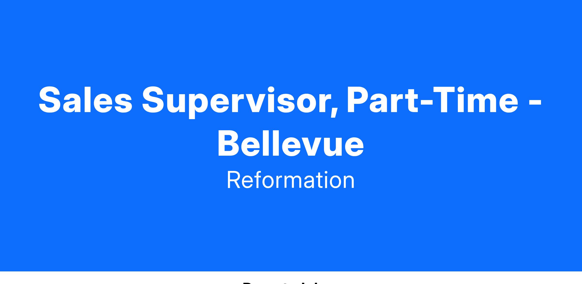 No position at Reformation is about the status quo, every team member is passionate about building a company rooted in excellence. Obsessed with customers and sustainability we use tech to create a unique interaction between our customers, employees, and the Reformation brand. The Sales Supervisor will help lead and execute all efforts required to achieve individual store goals.