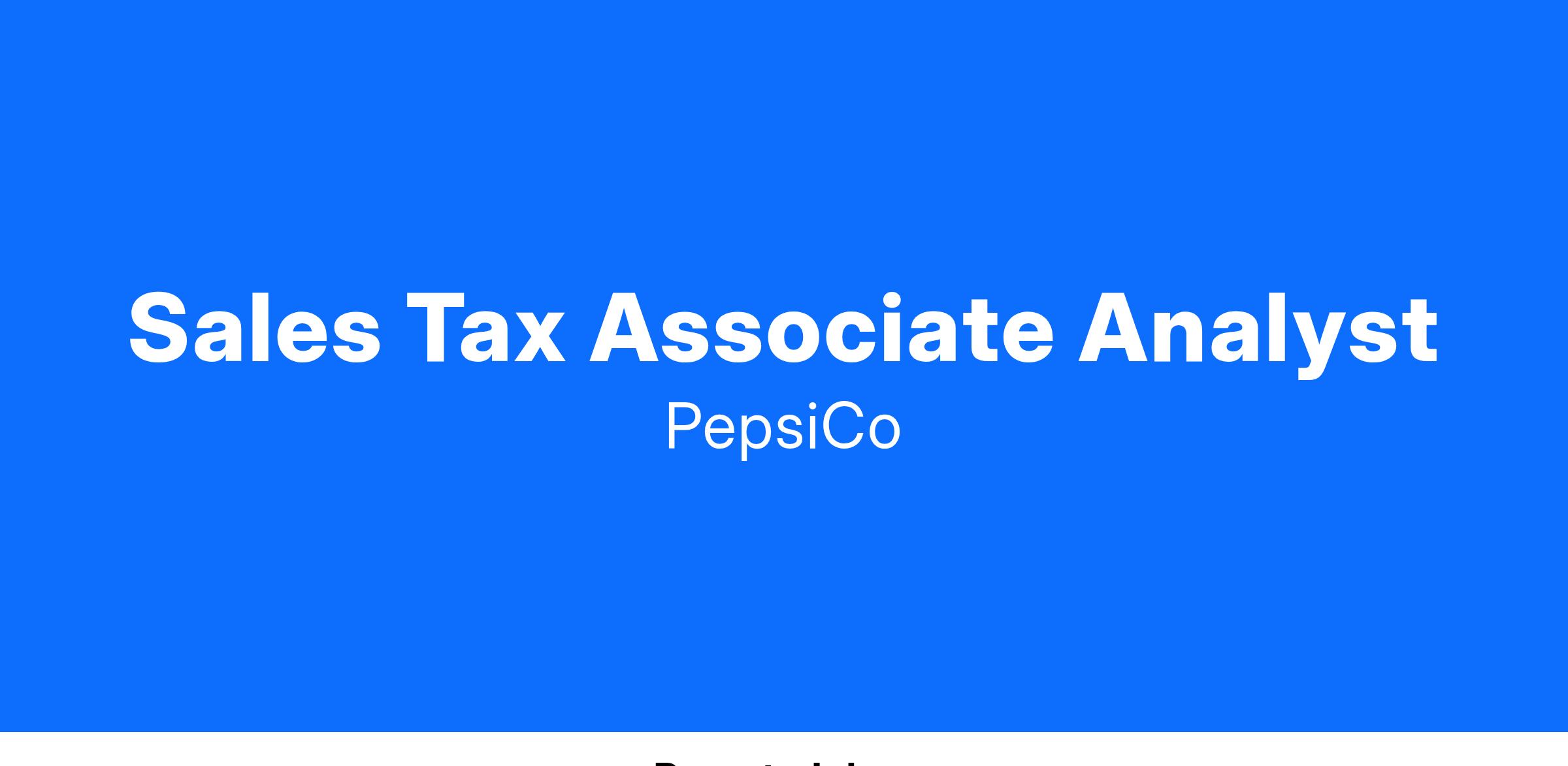 Overview The Sales Tax Associate Analyst position handles compliance, reconciliations, day to day tax questions from the field, perform tax research and assist in sales/use tax audits. Responsibilities Responds to questions about business transactions from business units or departments. Prepares/Reviews tax data for 3rd party compliance provider within prescribed deadlines. Maintain and reconcile journal entries for the accurate recording of tax liabilities. Provides information and assistance to financial reporting team and outside auditors. Assist with recurring and special projects as needed. Prepare documentation to support compliance with Sarbanes-Oxley (SOX 404) controls and procedures. Perform tax research to keep current with new and changing tax laws. Assist in the development/implementation of new software releases, change requests and enhancements as they pertain to property tax functionality. Work independently, as well as within a cross-functional project team environment. Support "tax customers" on special projects, new products and assessments. Support tax department technology needs as they relate to compliance, reporting, analytics and controls. Support tax technology process and requirements throughout the development life cycle (i.e. requirements documentation, test plans, validation, production support, etc). Research and determine state and local tax obligations and responsibilities. Compensation and Benefits: The expected compensation range for this position is between $64,300 - $107,650. Location, confirmed job-related skills, experience, and education will be considered in setting actual starting salary. Your recruiter can share more about the specific salary range during the hiring process. Paid time off subject to eligibility, including paid parental leave, vacation, sick, and bereavement. In addition to salary, PepsiCo offers a comprehensive benefits package to support our employees and their families, subject to elections and eligibility: Medical, Dental, Vision, Disability, Health, and Dependent Care Reimbursement Accounts, Employee Assistance Program (EAP), Insurance (Accident, Group Legal, Life), Defined Contribution Retirement Plan. Qualifications Bachelorβs degree in Accounting, Finance or related field. Understands basic concepts of sales and use taxes. Ability to communicate clearly and concisely, both orally and in writing. Ability to balance multiple priorities and meet deadlines. Ability to work as part of a team. Proficiency in Microsoft Word and Excel. Experience with Vertex tax software and SAP/Oracle ERP systems a plus. Ability to apply tax law to business planning. Strong analytical and problem solving skills. Detail oriented. Self Starter. 2-3 years experience in Transactional tax in a consulting/corporate environment. EEO Statement Our Company will consider for employment qualified applicants with criminal histories in a manner consistent with the requirements of the Fair Credit Reporting Act, and all other applicable laws, including but not limited to, San Francisco Police Code Sections 4901-4919, commonly referred to as the San Francisco Fair Chance Ordinance; and Chapter XVII, Article 9 of the Los Angeles Municipal Code, commonly referred to as the Fair Chance Initiative for Hiring Ordinance. All qualified applicants will receive consideration for employment without regard to race, color, religion, sex, sexual orientation, gender identity, national origin, protected veteran status, or disability status. PepsiCo is an Equal Opportunity Employer: Female / Minority / Disability / Protected Veteran / Sexual Orientation / Gender Identity. If you'd like more information about your EEO rights as an applicant under the law, please download the available EEO is the Law & EEO is the Law Supplement documents. View PepsiCo EEO Policy. Please view our Pay Transparency Statement.