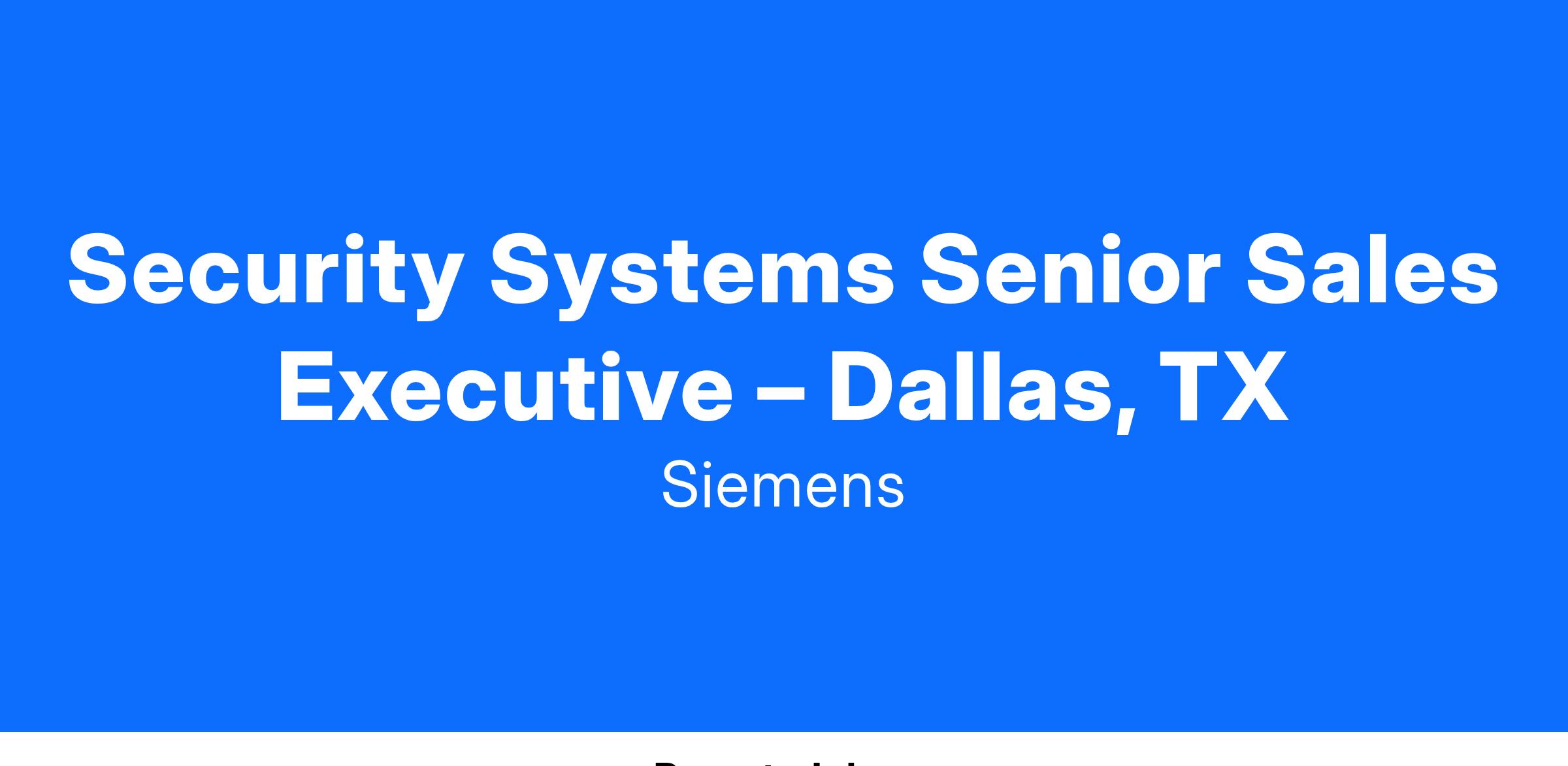 The Security Systems Senior Sales Executive is committed to supporting our new construction business within our commercial Security Systems team. Our Service/Solutions Security Sales team will achieve booking and profit goals by developing and implementing plans to grow, develop, and manage contractor, consultant, developer, and end-user relationships; capitalize on sales opportunities within the territory; and effectively execute sophisticated deals independently within our established guidelines. Why is this so important? Our Sales Executives are ambassadors of quality Siemens technology, products and services, and your expertise and regular interaction with the customers will help them optimize and facilitate a safe, emergency-ready workplace.