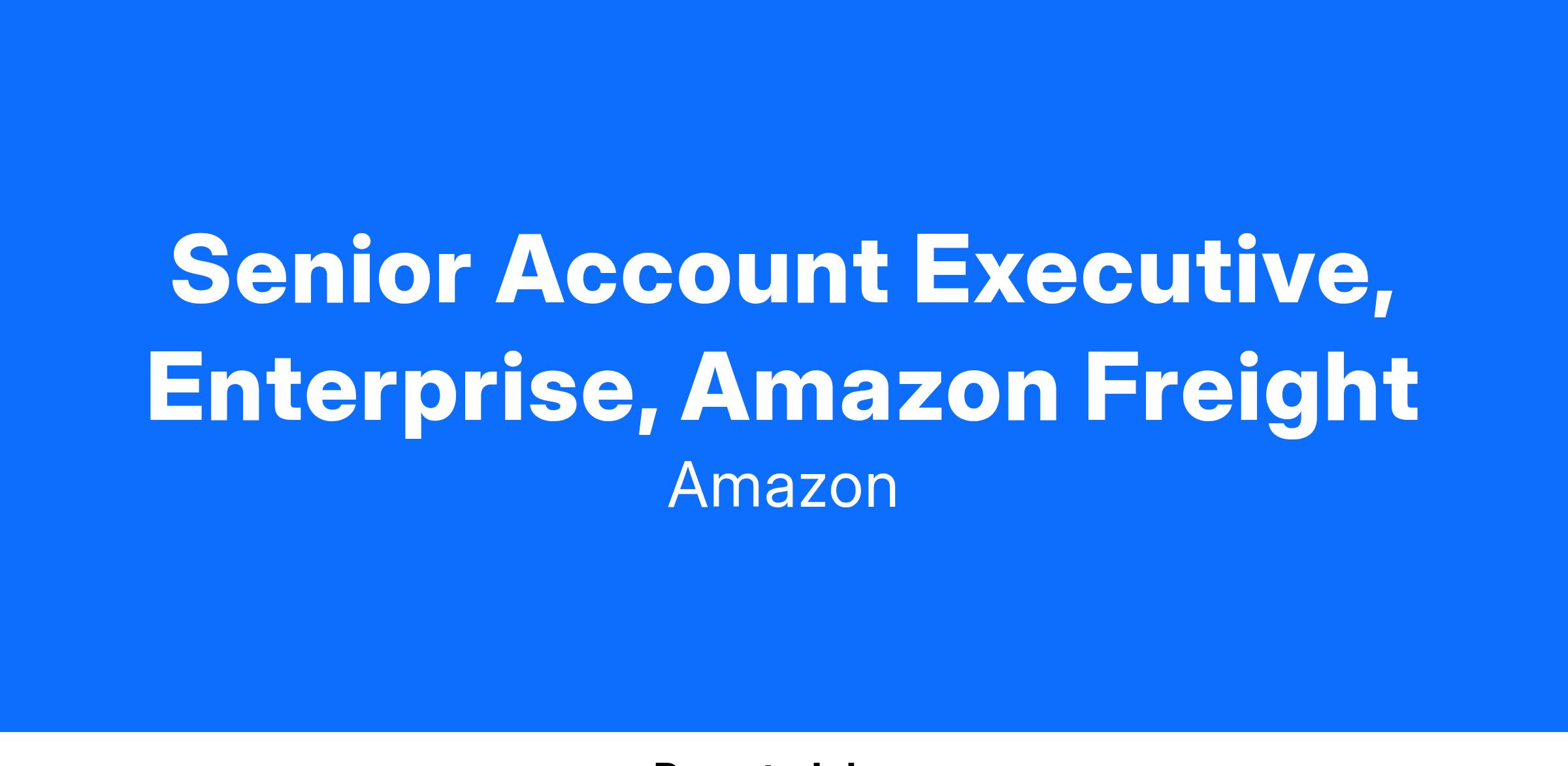 As a Senior Account Executive, the role will oversee relationships with Amazon Freightβs largest Customers. In this role, the Senior Account Executive will drive new business growth by unlocking new commercial opportunities and selling creative solutions aligned to customer needs while also maximizing retention of an existing portfolio of business. The position will build solutions with internal Pricing, Sales, and Operations teams that will unlock new business while also delivering a high-quality customer experience.