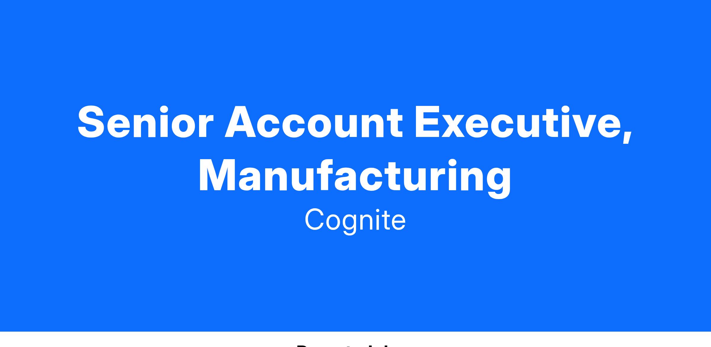 As a Senior Account Executive you will win new business with top Manufacturing accounts. You will help customers achieve improved business results through their adoption of Cognite Data Fusion to accelerate their digital transformations.
