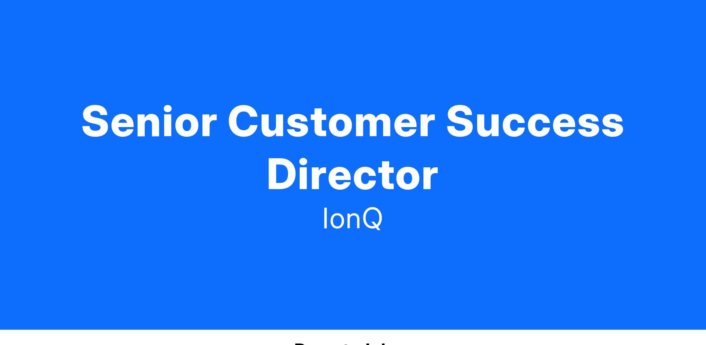 We are looking for a Senior Customer Success Director to join a dynamic, cross-functional team dedicated to driving IonQ’s mission of delivering exceptional experiences for our customers. In this role, you will play a key part in ensuring customers unlock the full value of our platform. You will onboard and develop new users of IonQ’s quantum computers by aligning our offerings with their priorities. You’ll guide them in gaining an understanding of the world’s leading quantum solutions. You will support our customers by guiding them through performance optimization, designing and delivering tailored training programs for diverse audiences, and representing IonQ at industry conferences.