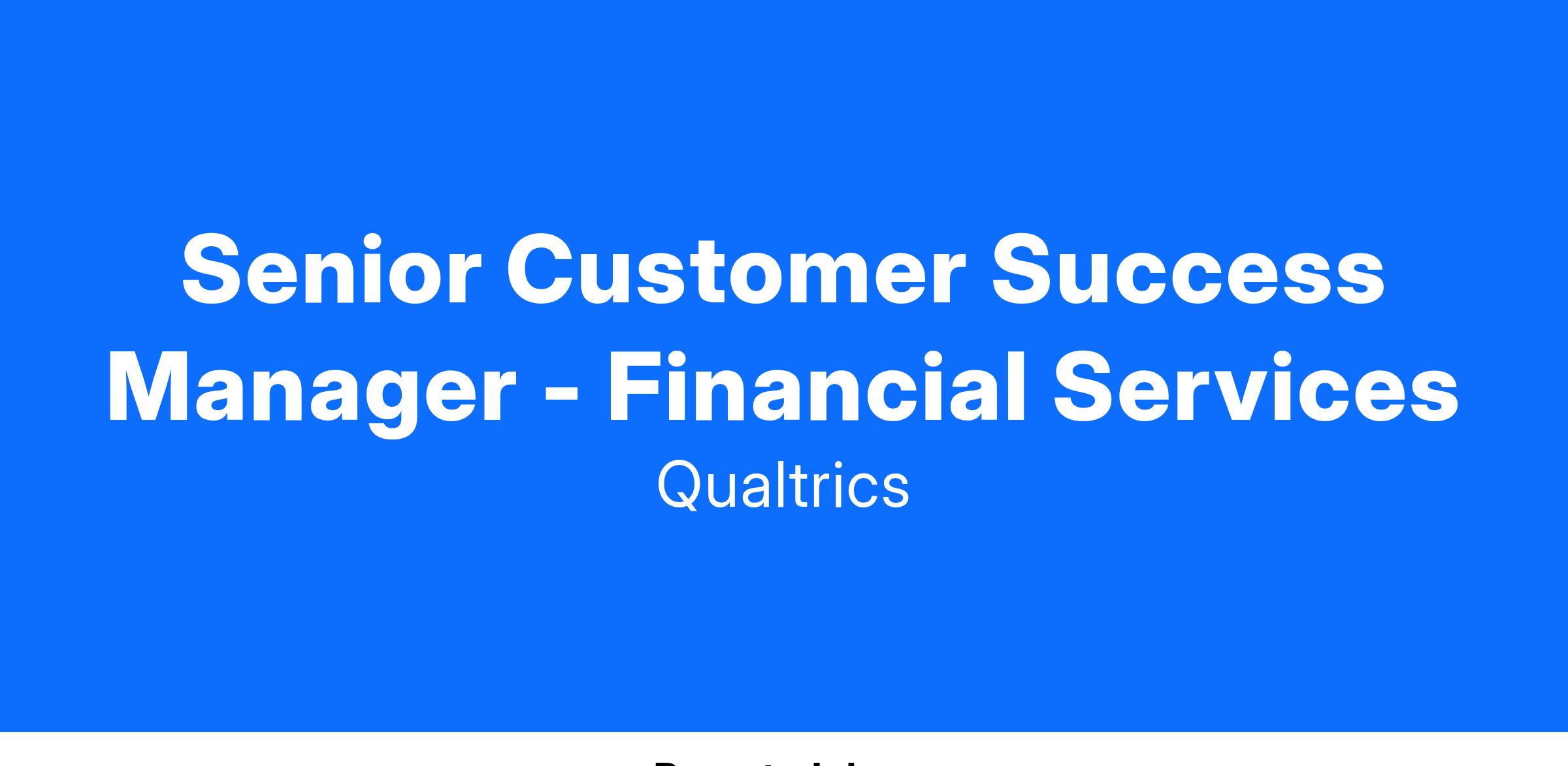 Senior Customer Success Leader - Financial Services