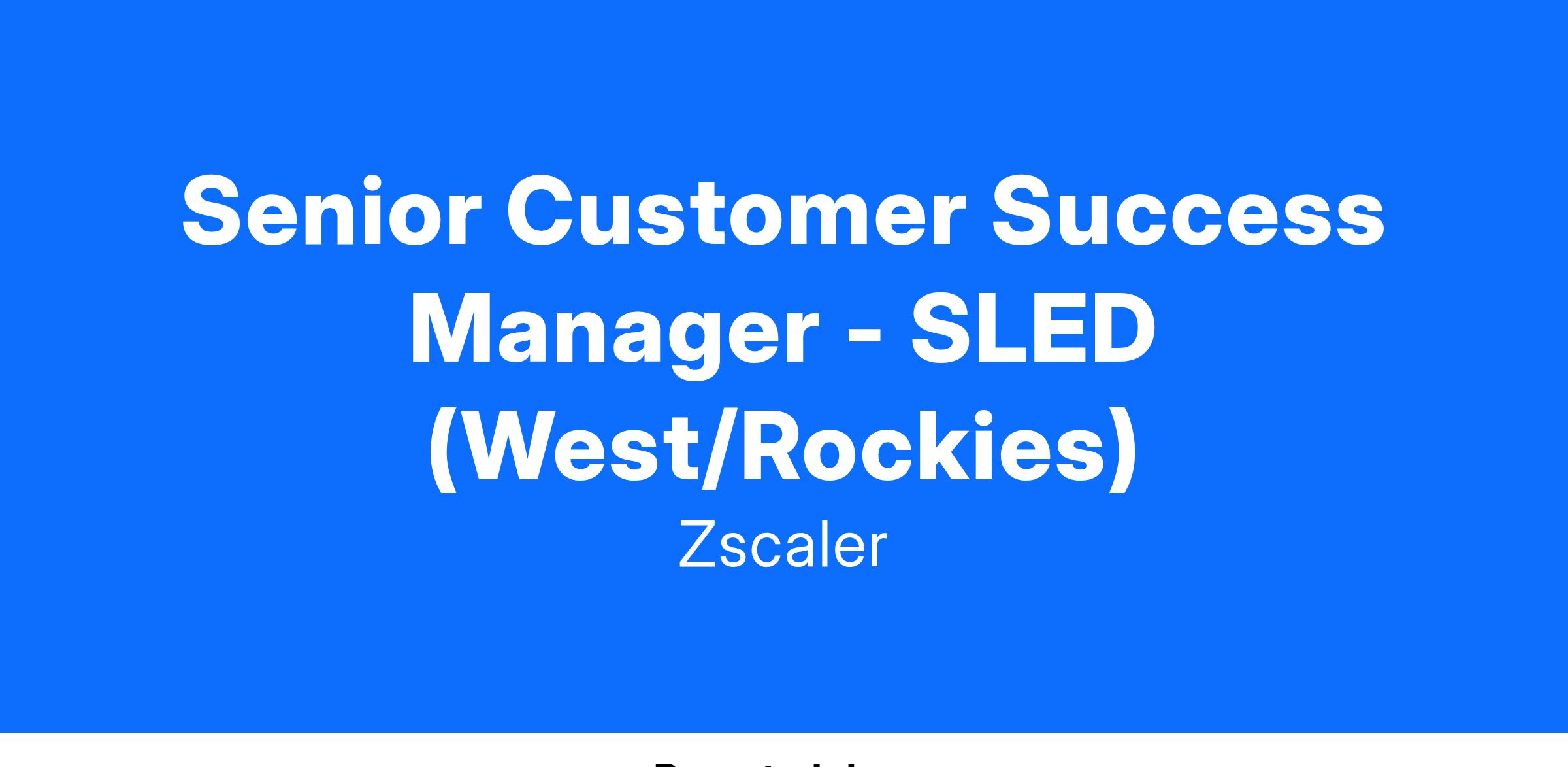 We're looking for a Senior Customer Success Manager to join our Customer Success team for SLED, reporting to the Manager, Customer Success Management for SLED. This role is located anywhere in the West/Rockies area, and can be fully remote.