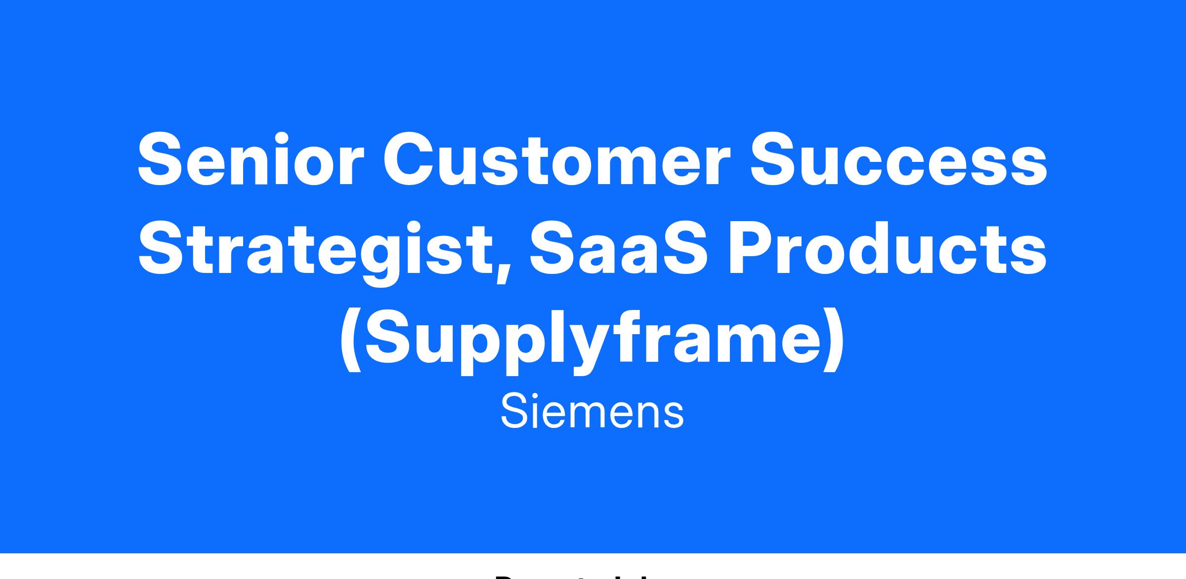 Supplyframe, recently acquired by Siemens, is an innovative and rapidly growing leader in the electronics component industry. We are seeking a Senior Customer Success Strategist (SaaS Products) to lead and drive digital innovation with our customers. This high-impact, high-visibility role is a mix of customer strategy and execution. It will require the individual to operate both as a player and a coach all the while being at the forefront of our fast-growing SaaS customer experience organization.