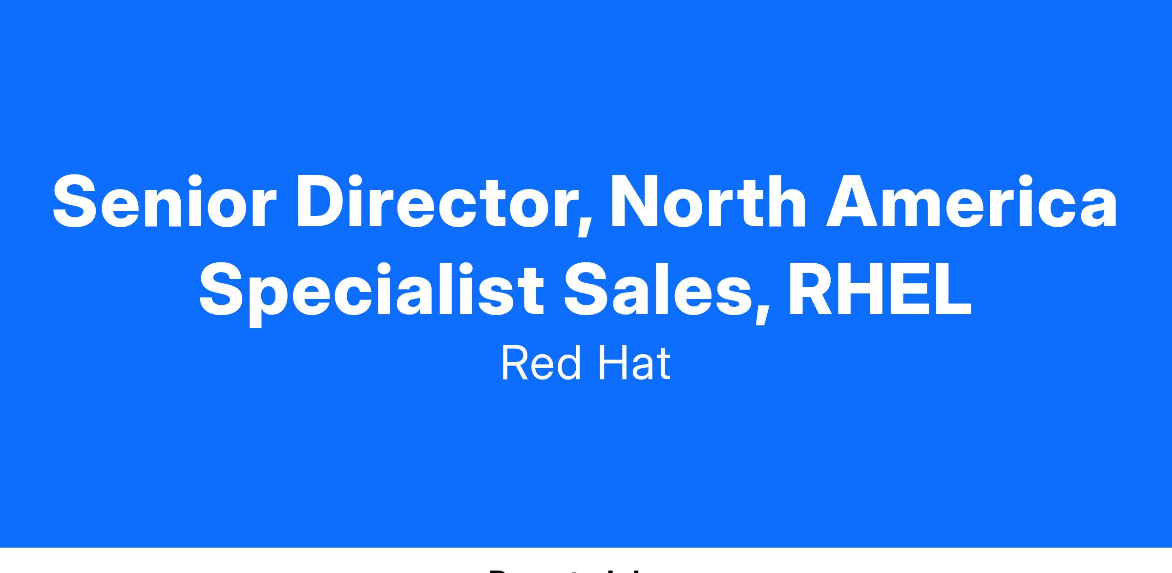 The Red Hat North America Technology Sales team is looking for an Enterprise Linux (RHEL) Platform Leader to join our team. This is a leadership position responsible for the quality and execution of the North America RHEL business as well as field execution for RHEL specialists. This role is also responsible for developing and advocating Red Hat’s go-to-market (GTM) strategies and tactics in North America for the RHEL platform.