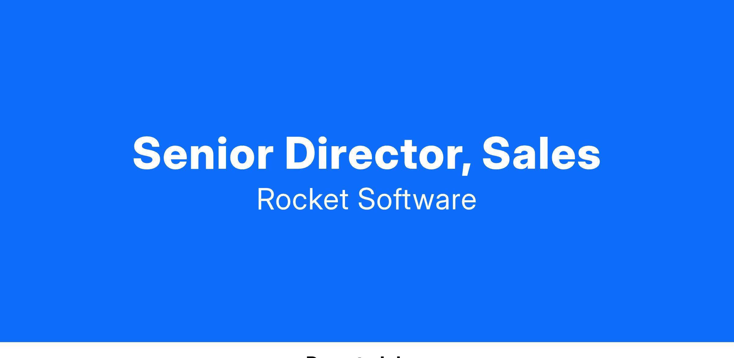 The Senior Director, Sales will lead a team of sales professionals who are charged with rapidly expanding our existing account base. They are ultimately driving sales by focusing the team on high value opportunities and by developing the strategic selling skills of the team. This individual will drive the sales activity for the Rocket’s solutions into target client companies by partnering with key Rocket Sales executives, product management, marketing, and other key business executives.Essential Duties and Responsibilities: