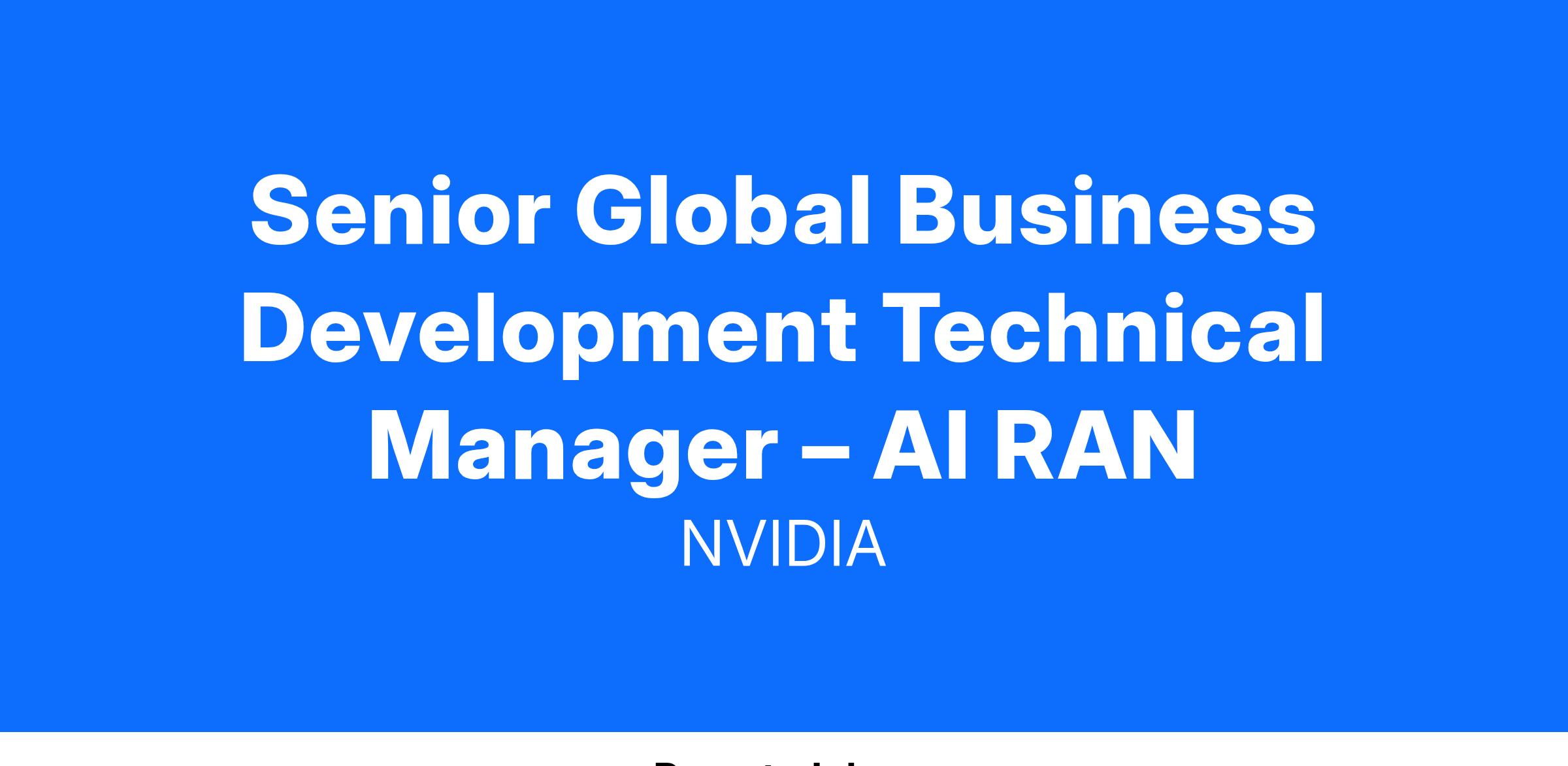 Qualify, develop, and onboard NVIDIA AI RAN customers around the world.