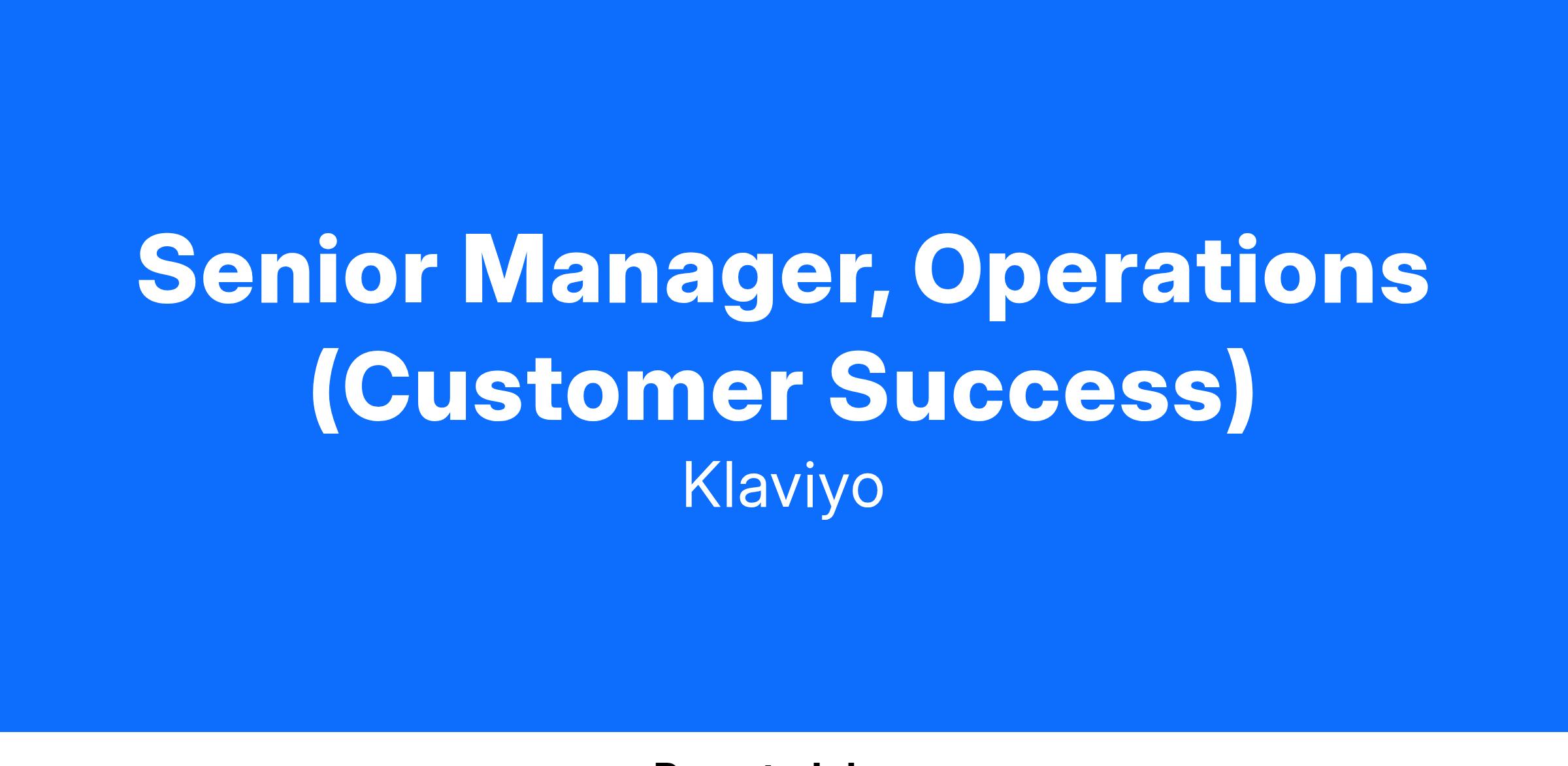 Senior Manager, Customer Success Operations @ Klaviyo!