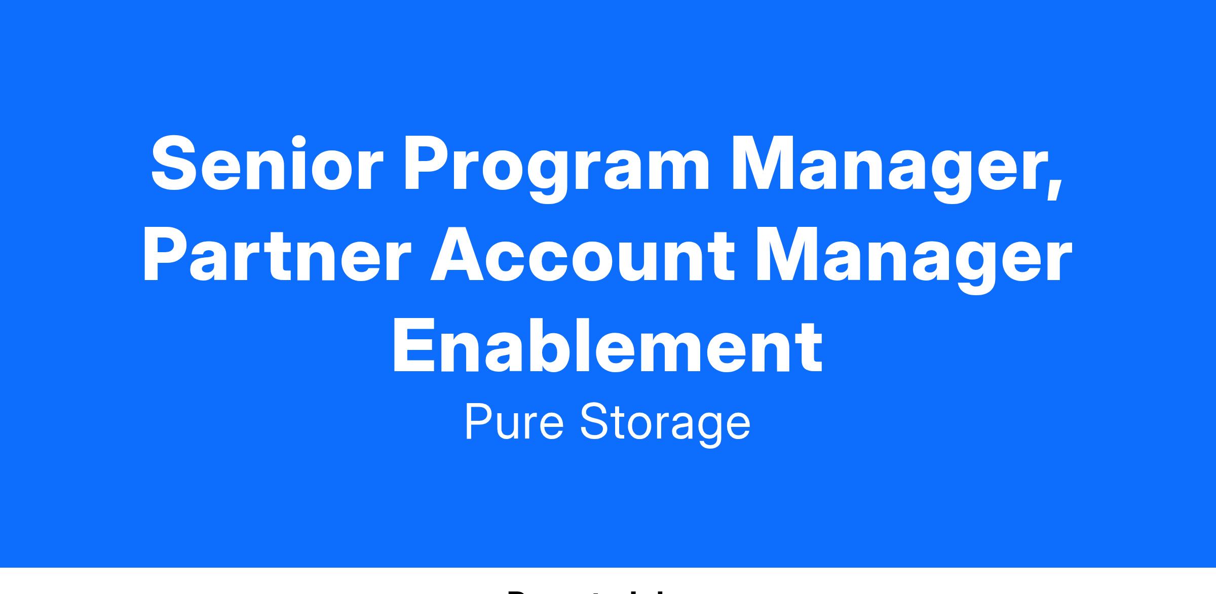 Pure Storage is looking for a Senior Program Manager, Partner Enablement with a proven track record of success in supporting global partner account managers and working cross functionally. In this influential role, you will serve as a vital business collaborator, working closely with channel sales leadership and line of business teams to introduce initiatives that ignite interest and enhance partner account manager sales skills within our global partner organization.