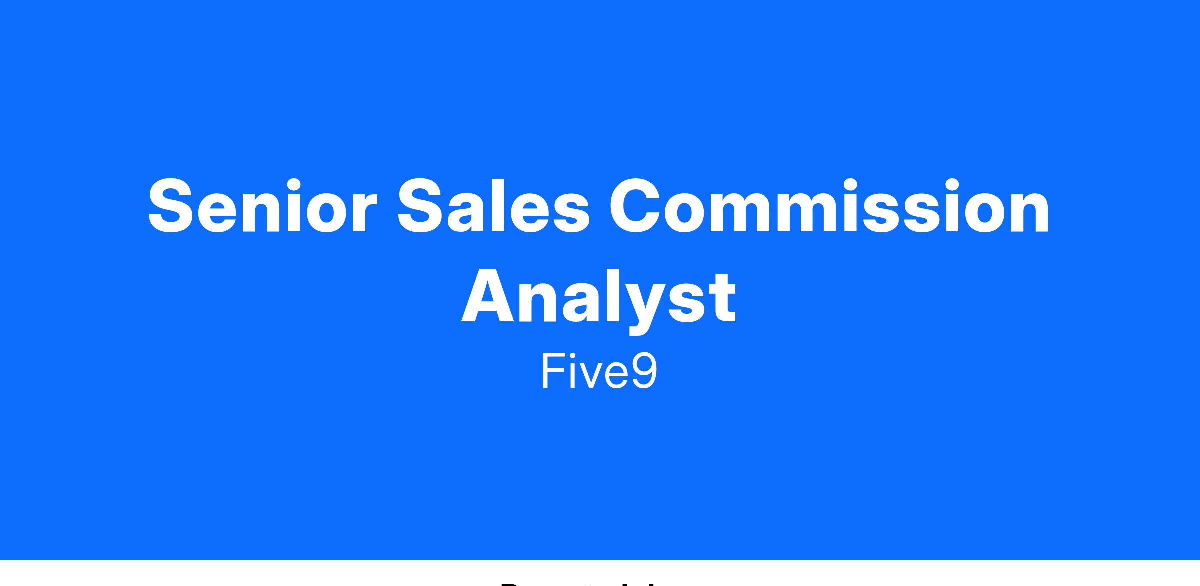 To complement our rapid growth, we are seeking a Senior Sales Commission Analyst. This role requires a highly quantitative and detail-oriented analyst with a passion for working with Sales. As a member of Five9’s Finance group, the primary responsibilities include managing compensation plans, performing monthly and quarterly commission calculations, generating reports and analytics, and addressing commission-related inquiries. The ideal candidate has a strong understanding of sales, channels, and business operations within the Enterprise Software industry and can effectively communicate with company leadership.
