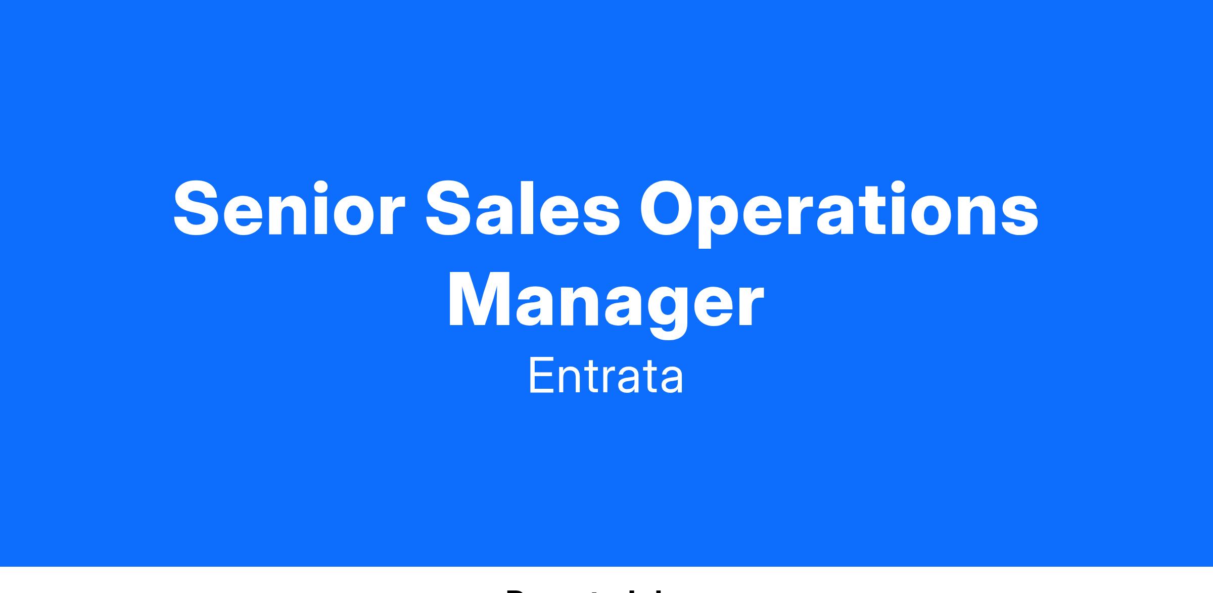Entrata Software, a leading provider of property management software solutions, is seeking a Sr. Sales Operations Manager to join our dynamic team. As the Sr. Sales Operations Manager, you will be responsible for optimizing sales processes, driving efficiency, and maximizing revenue through data analysis, system management, and strategic planning. This role will collaborate closely with sales, marketing, and finance teams to streamline operations and support the achievement of sales targets. The ideal candidate will have a strong background in sales operations, excellent analytical skills, and the ability to thrive in a fast-paced environment.