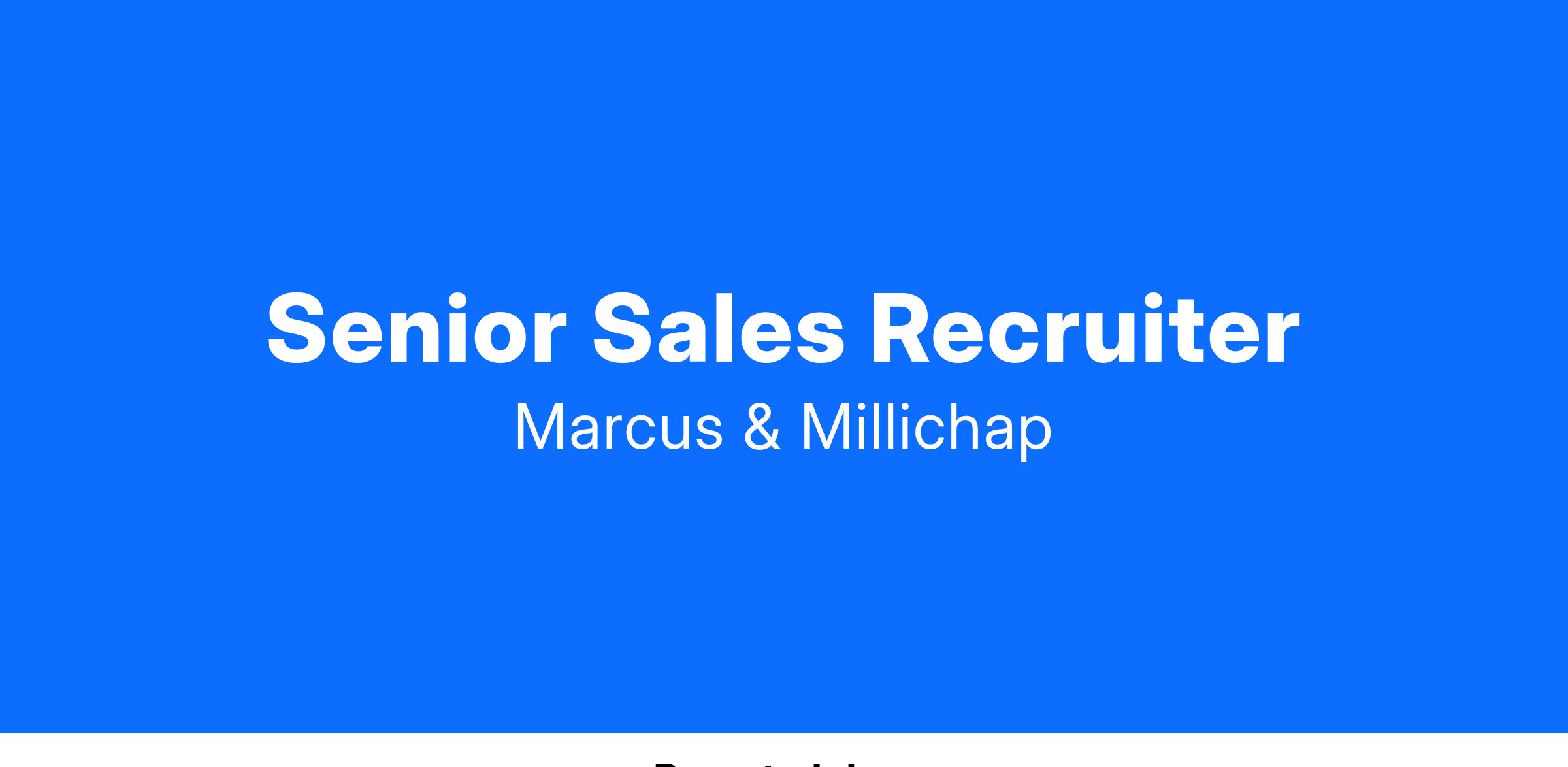 Marcus & Millichap, the nation’s leader in commercial real estate investment sales, is seeking a strategic, collaborative, and tenacious Senior Sales Recruiter to join its team to support recruiting efforts throughout the Midwest Division.